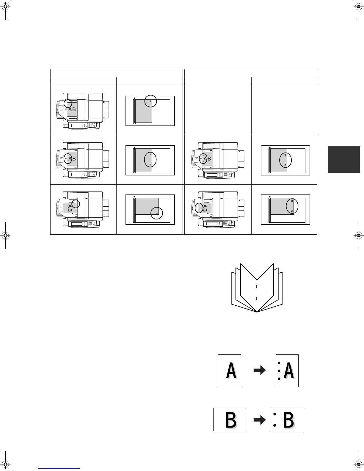 When using the staple sort or punch function, the original must be placed in the following orientations to enable