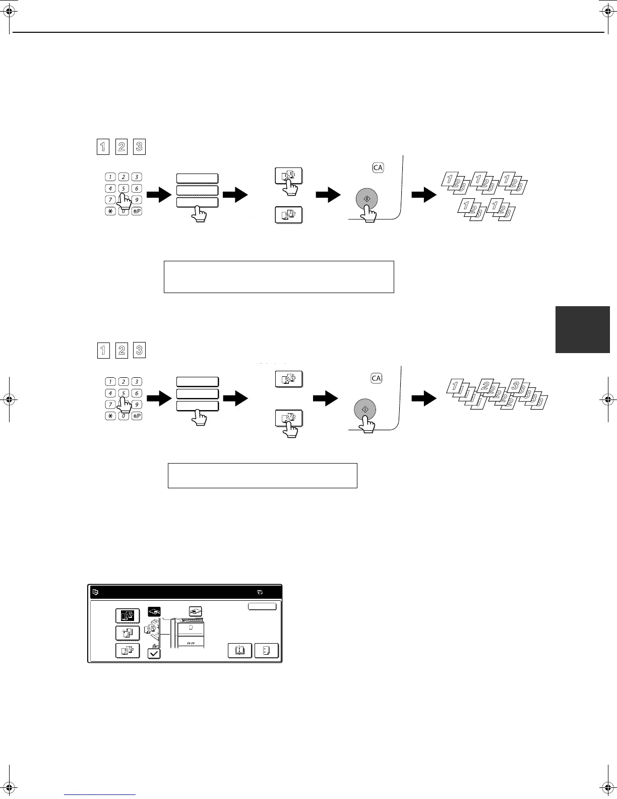 saddle stitch finisher. When the "CENTER TRAY" key is highlighted, output pages are delivered to the center