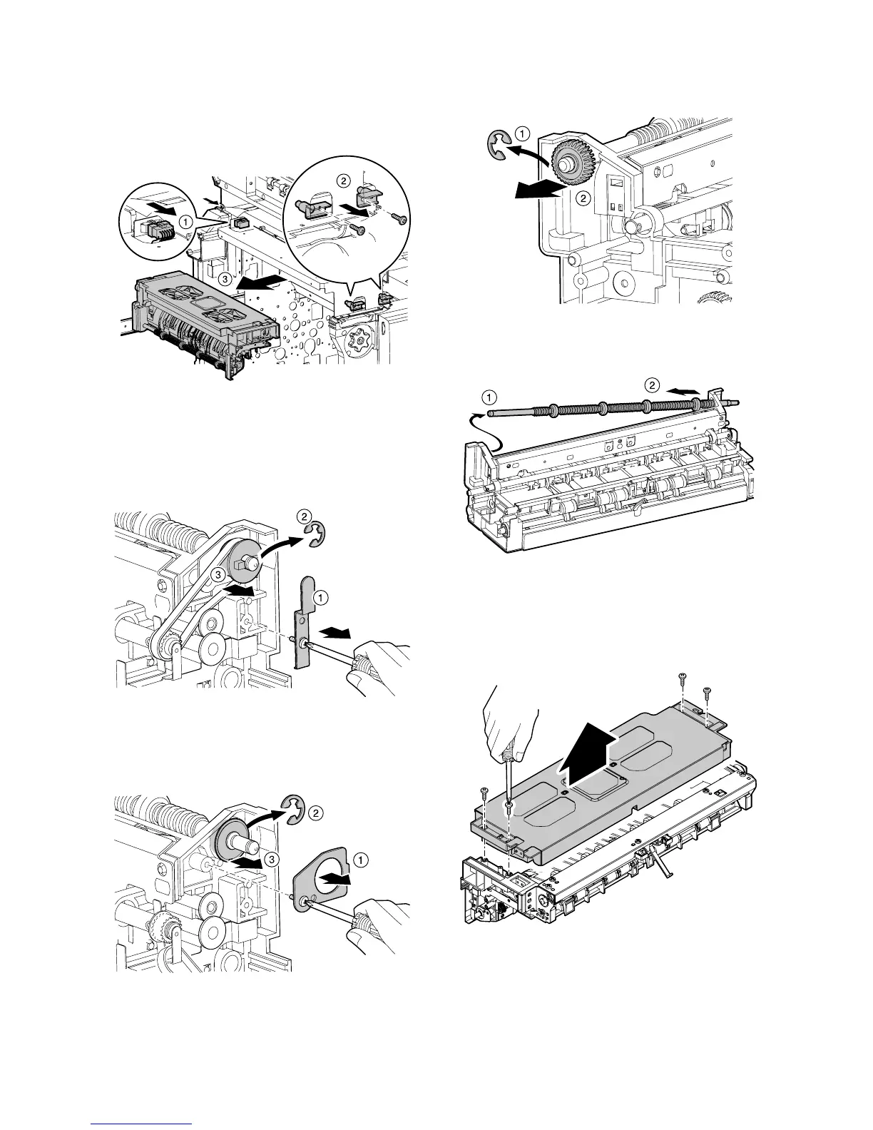 1) Remove the paper exit unit. (See “(1) Paper exit unit”)