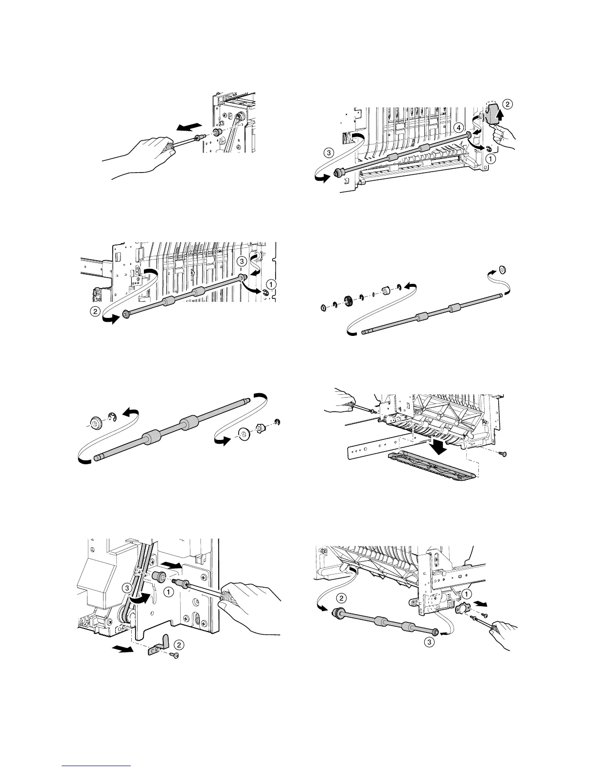 6) Remove the E-ring to remove the transport roller 19 assembly.