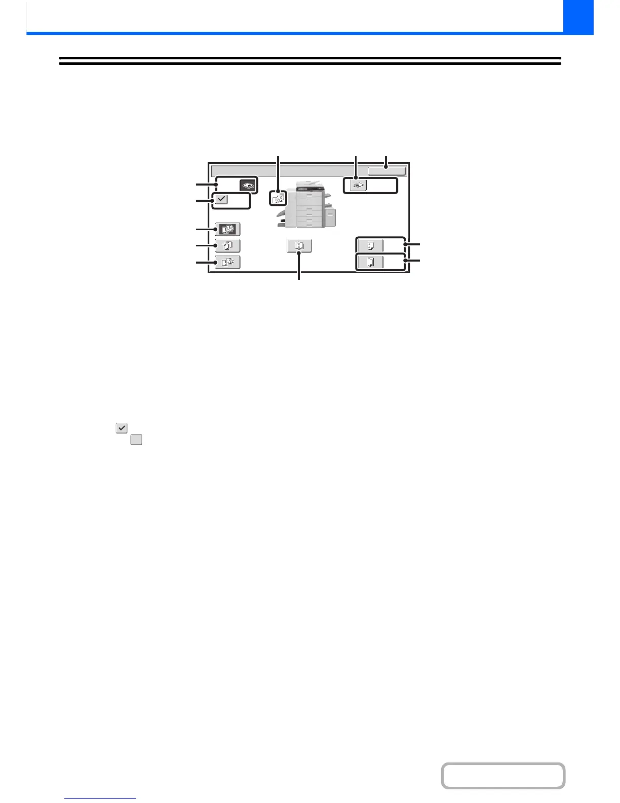 To select output functions and the output tray, touch the [Output] key in the base screen of copy mode. Output functions