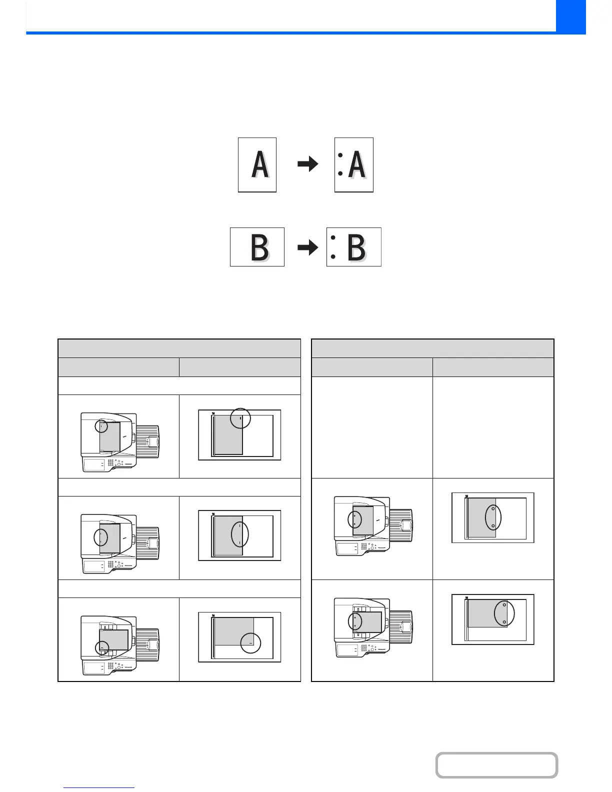 When using the staple sort function or the punch function, the original must be placed as shown below to enable stapling