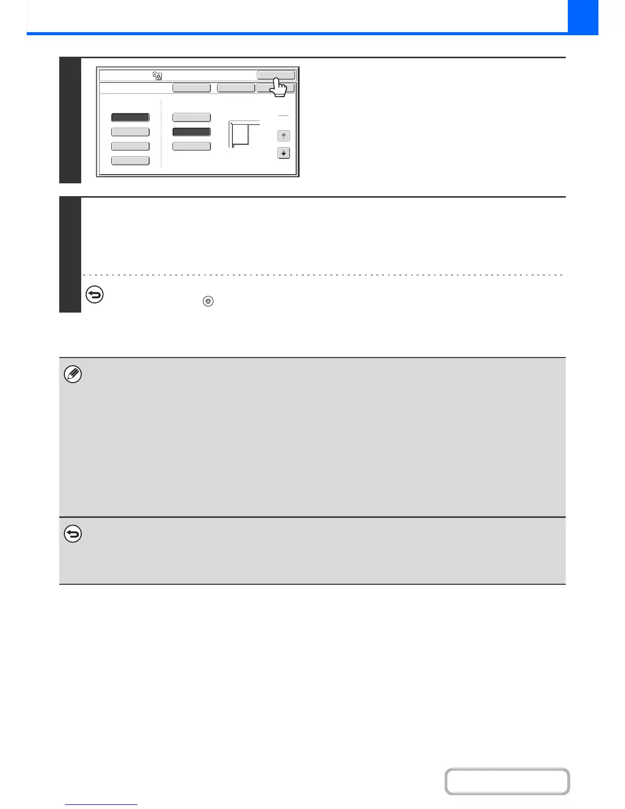 To return the ratio setting to 100%, touch the [Copy Ratio] key to display the ratio menu and then touch the [100%] key.
