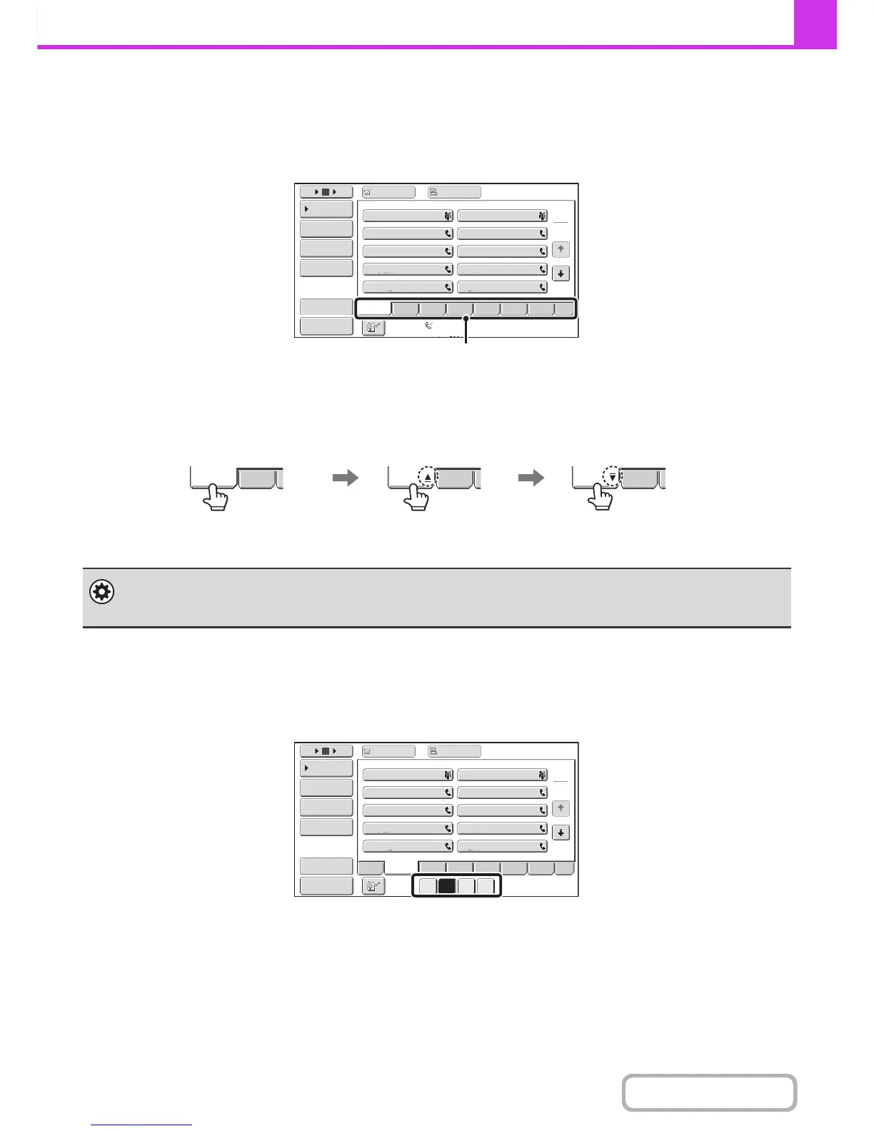 Indexes make it easy to search for a destination (one-touch key). The destinations are displayed separately using