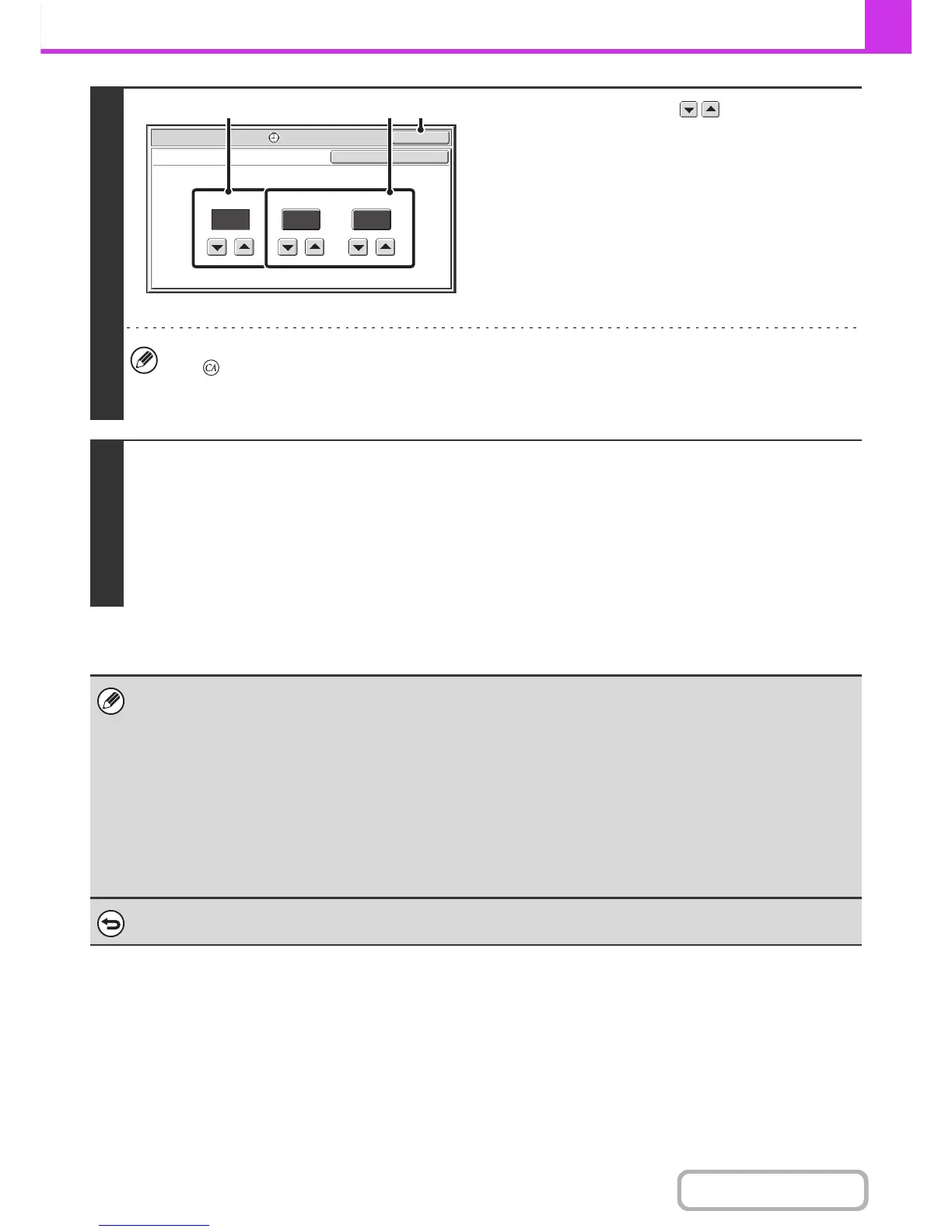When this screen is opened, the setting will show the current time. If the time is not correct, press the [CLEAR ALL]