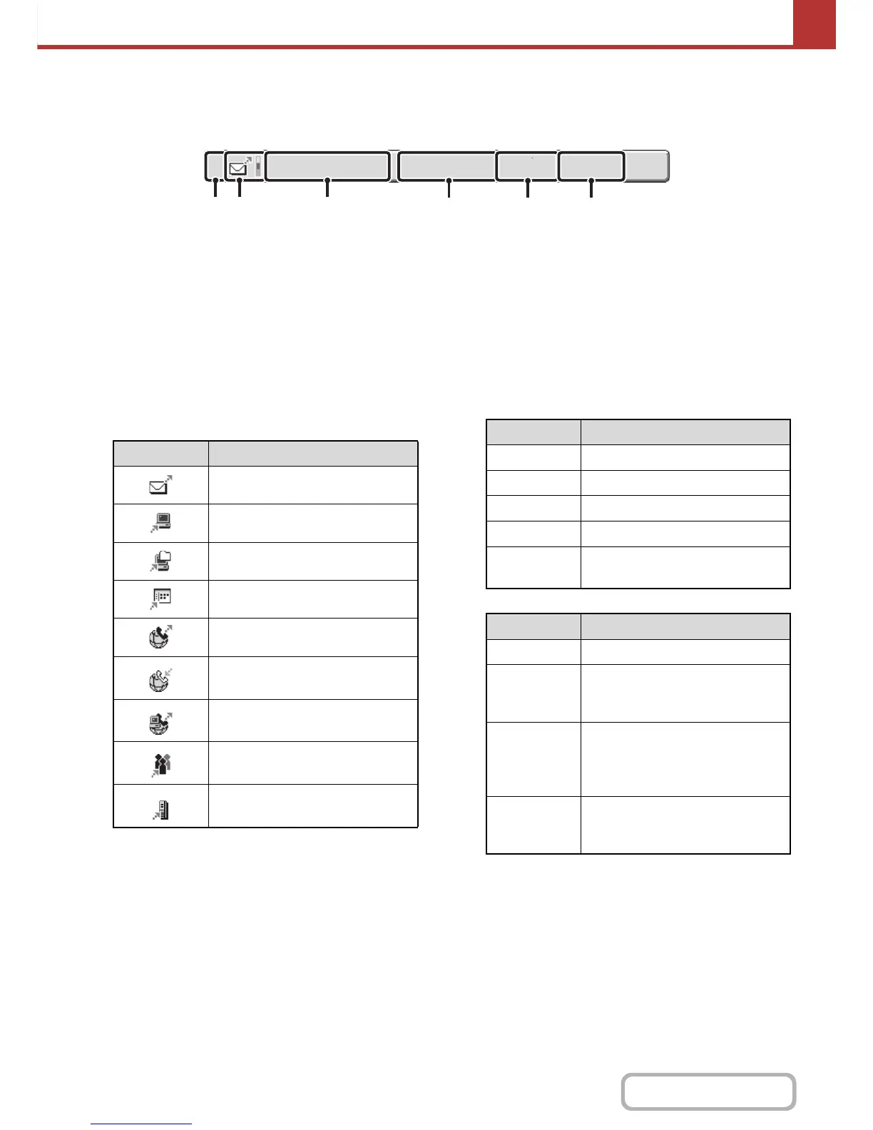 The following information is shown in the job queue keys and completed job keys that appear in the job status screen.