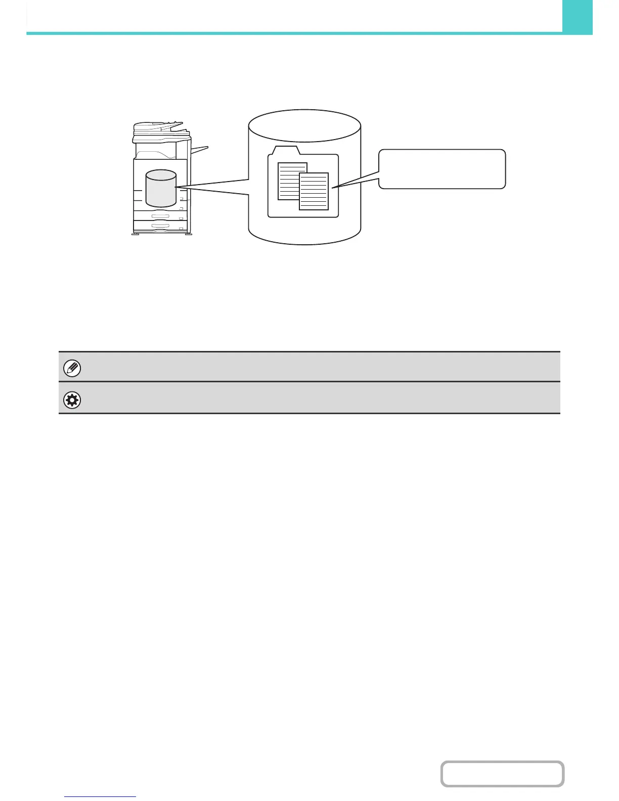• Files saved using "Quick File" are assigned the "Sharing" property. "Sharing" files can be retrieved and printed or