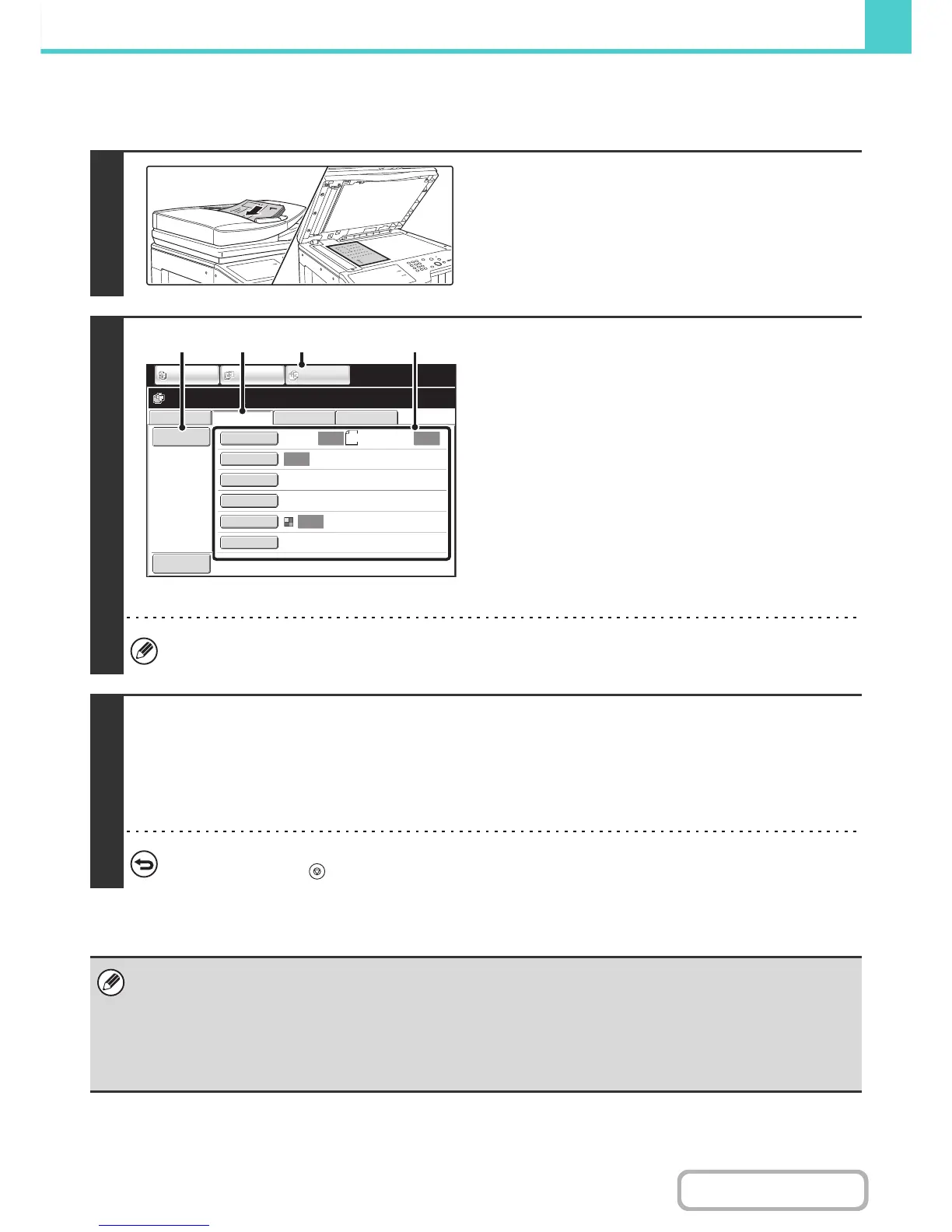If the original is 2-sided, be sure to touch the [Original] key and then touch the [2-Sided Booklet] key or the [2-Sided