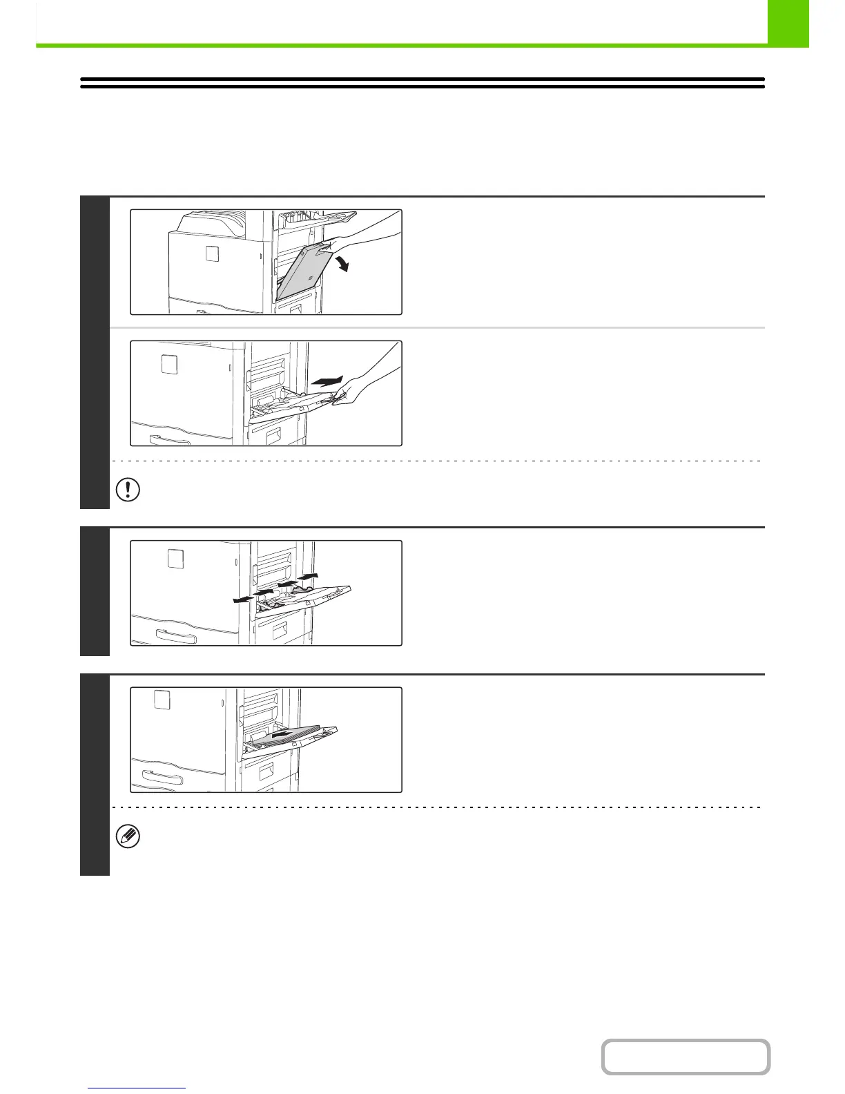 The bypass tray can be used to print on plain paper, envelopes, label sheets, tab paper, and other special media. Up to