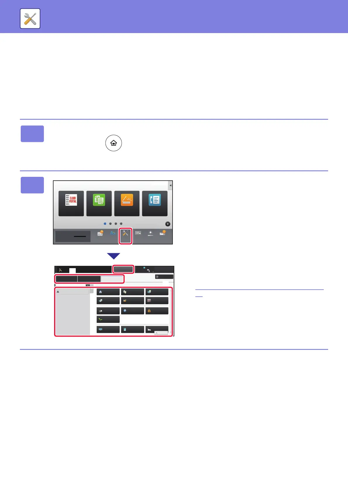 The date and time can be set, fax and scan destinations can be stored, document filing folders can be created, and