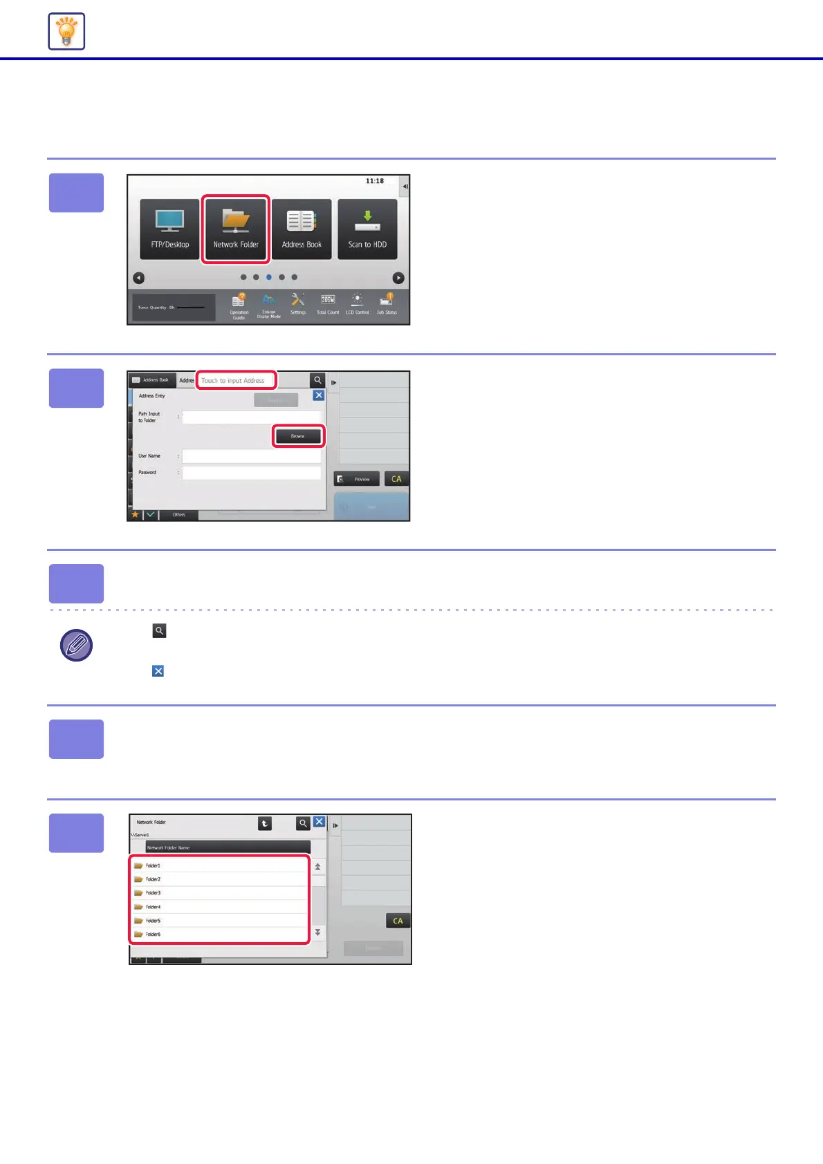 • Tap and enter a keyword to search for a workgroup, server, or network folder.