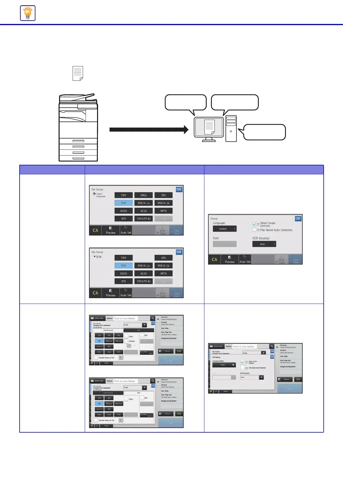 You can convert a scanned document directly to an Office file or to a searchable PDF that lets you find text.