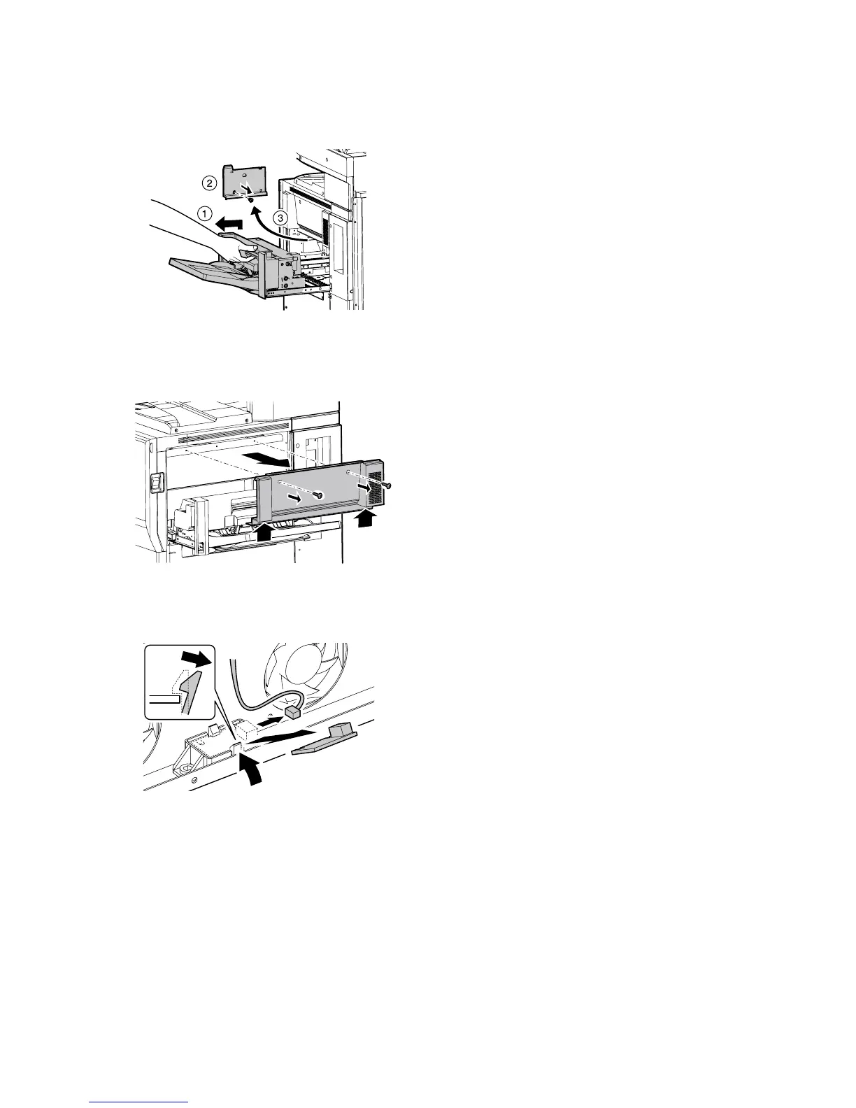 2) Pushing the lower part, remove the right cabinet center.