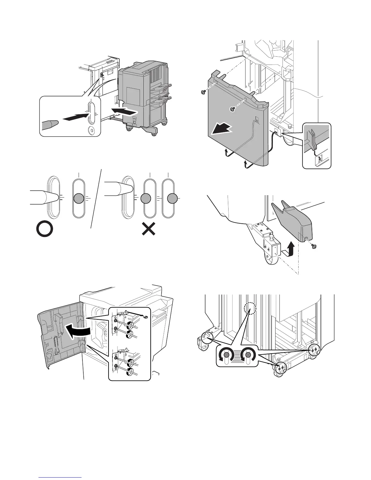 1) Bring the finisher closer to the main unit and check that the