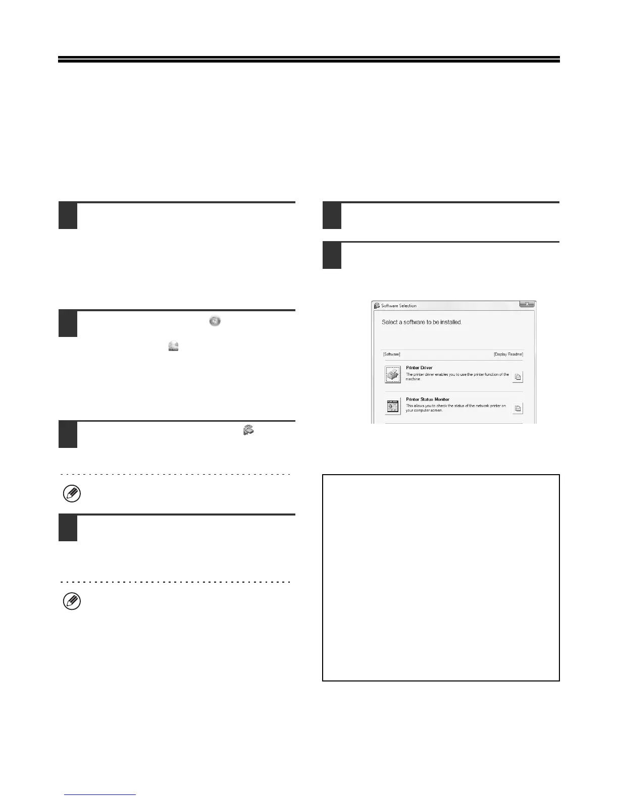 • If you are installing the printer driver or printer status