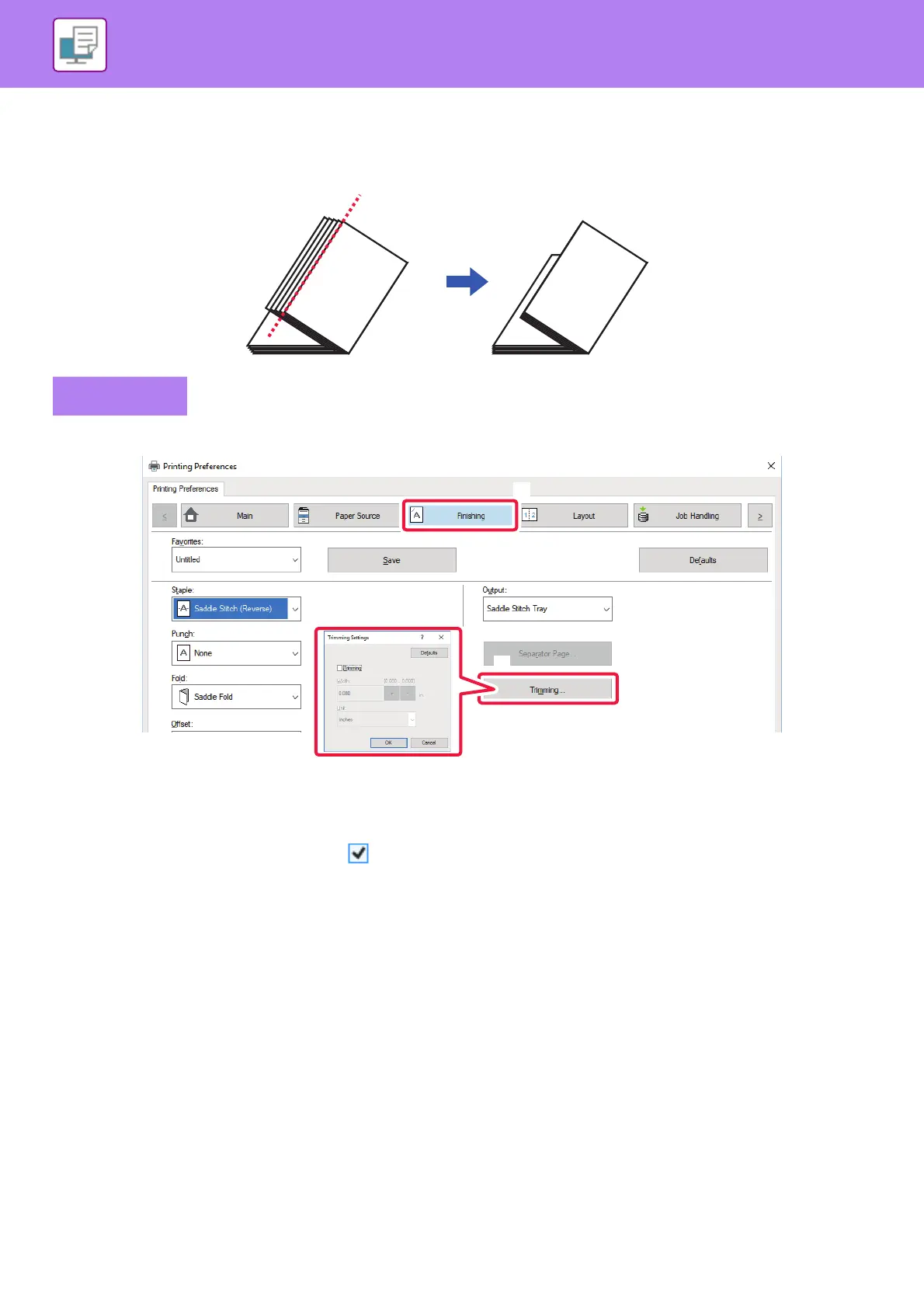 (3) Set the [Trimming] checkbox to , and specify "Trimming Width".