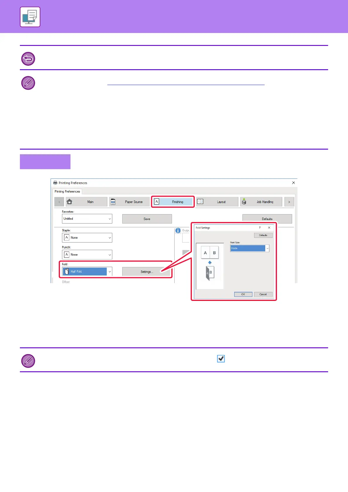 • The Fold function cannot be used together with the Punch and Staple functions. However, the Z-Fold function can be used