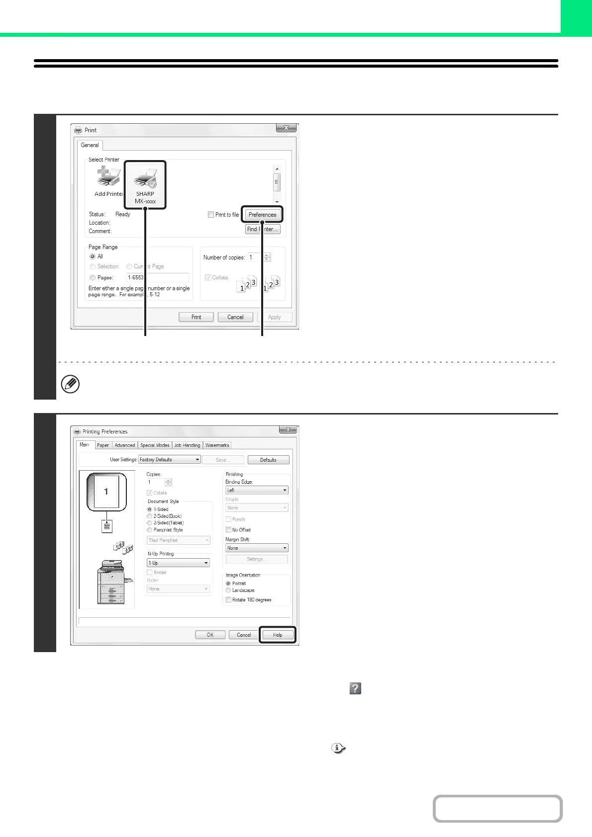 When selecting settings in the printer driver, you can display Help to view explanations of the settings.