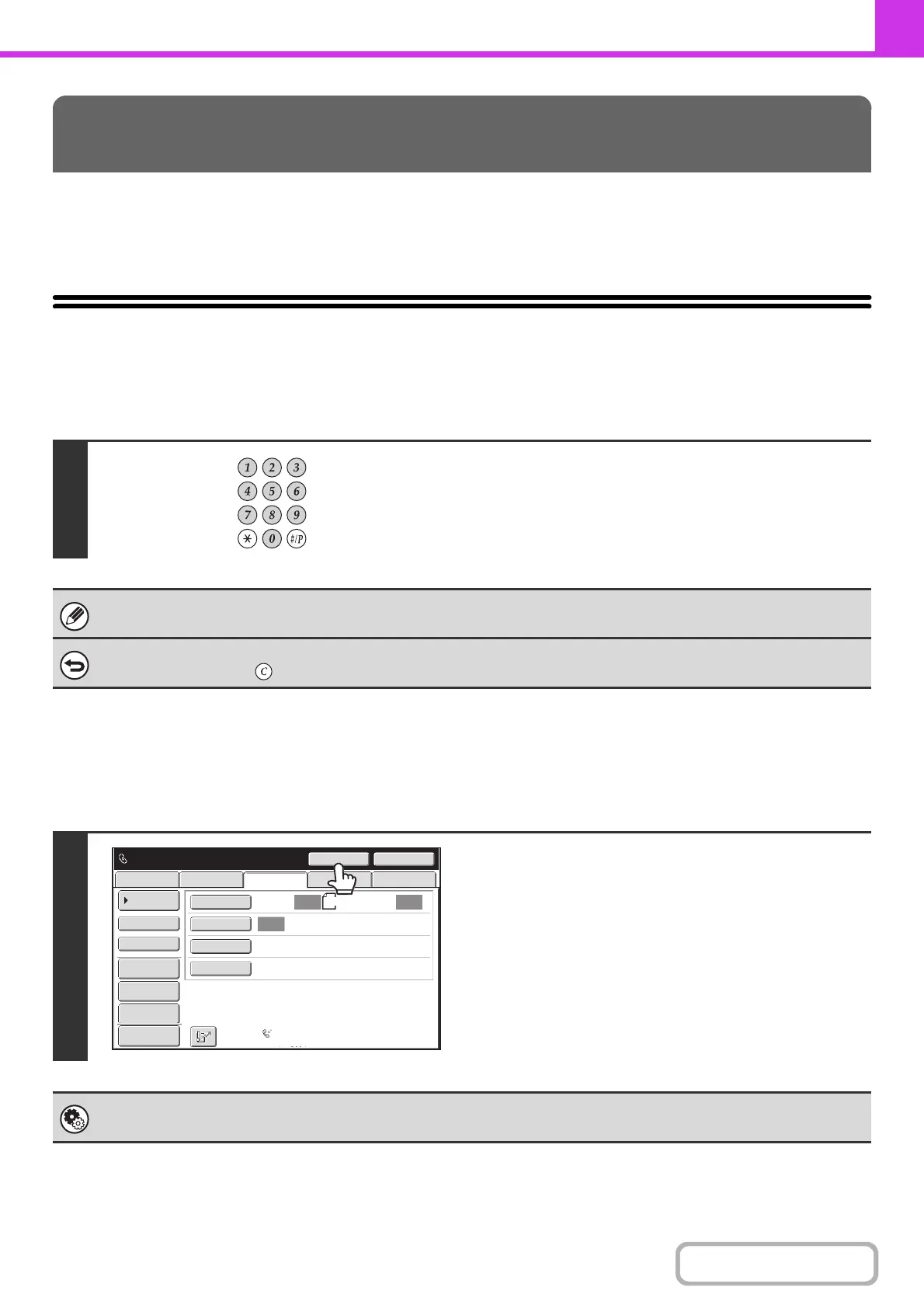 Destination fax numbers can be entered using the numeric keys, or by retrieving a previously stored fax number using