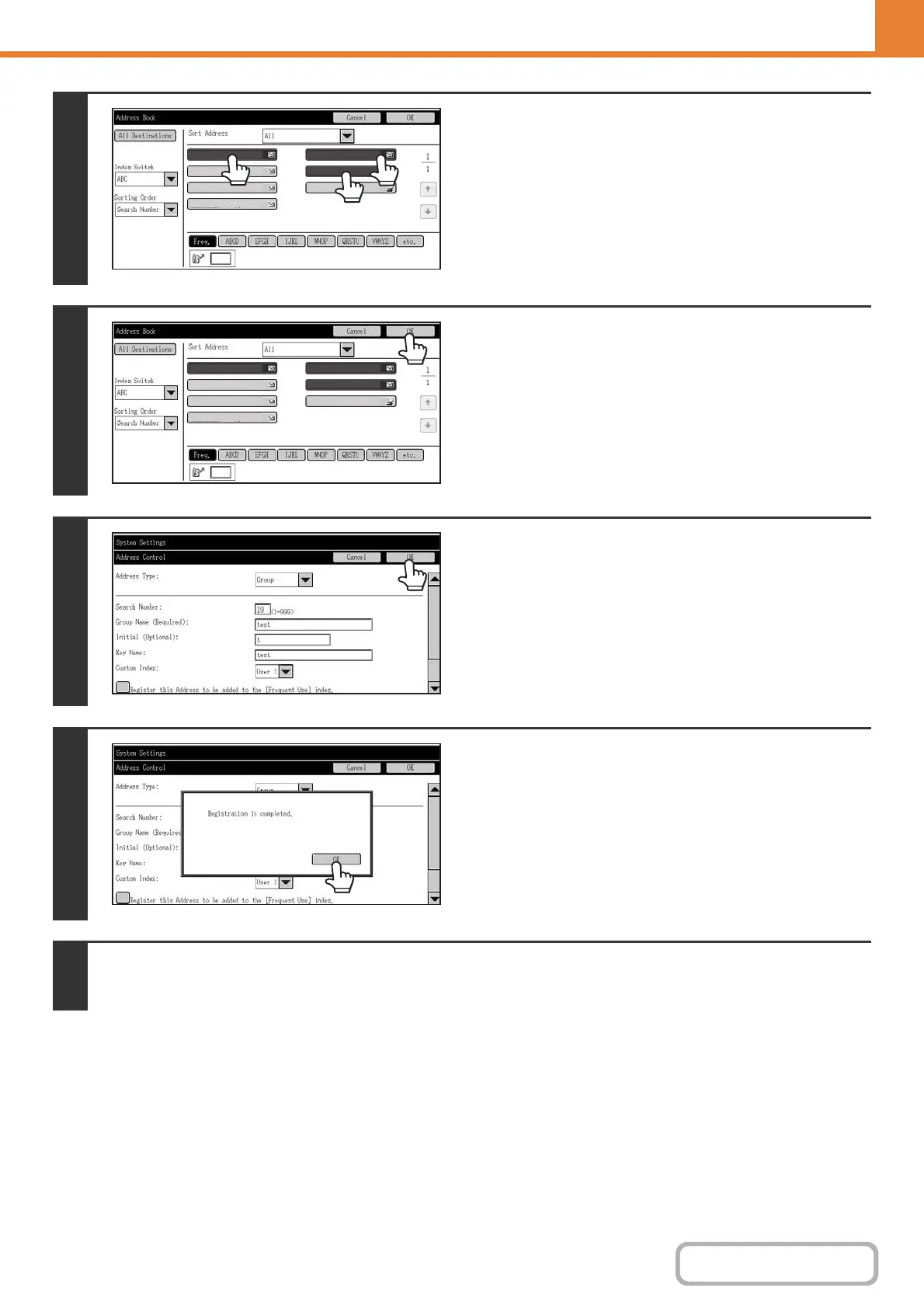 The group key registration screen appears. If you want to finish, touch [Cancel]
