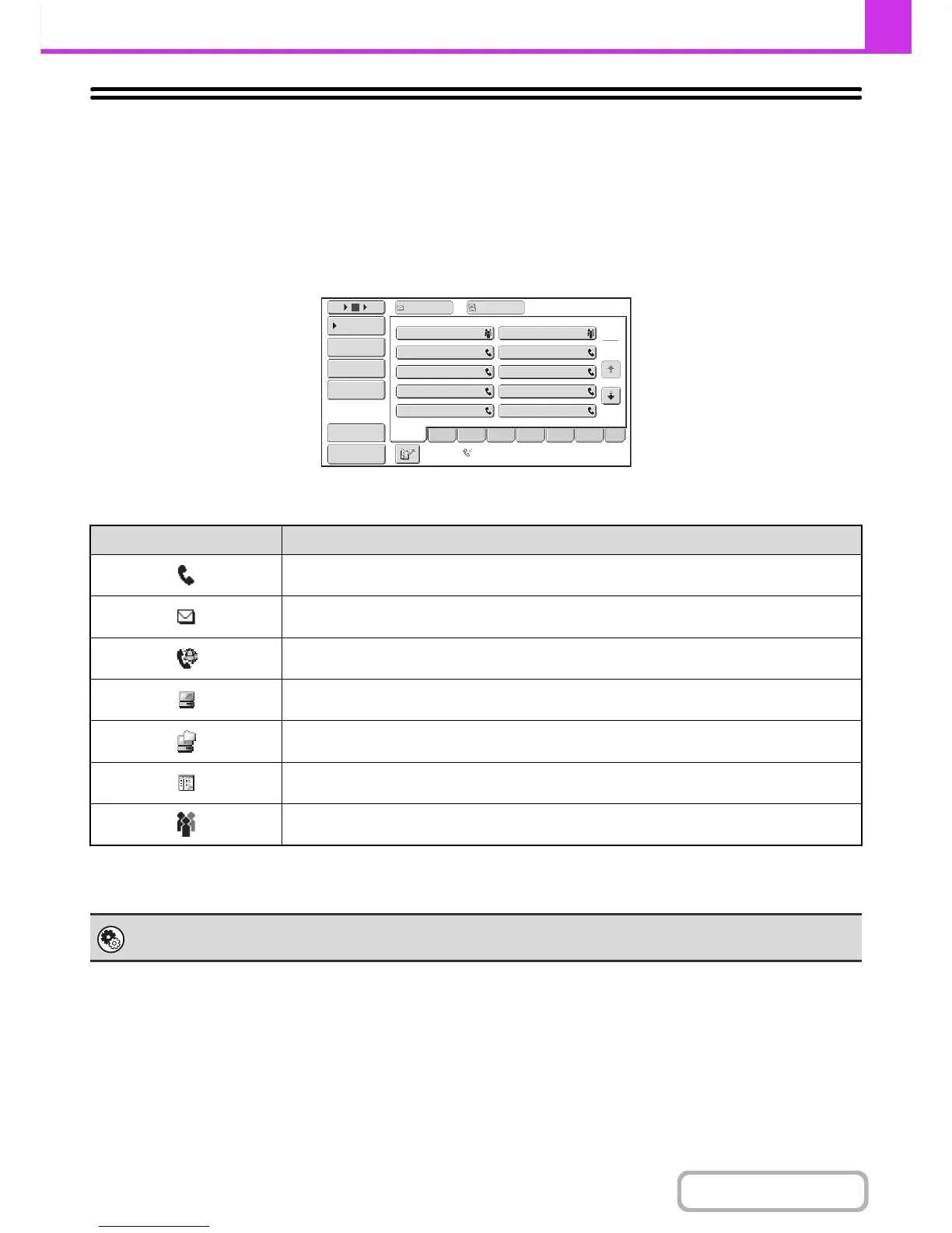 This is used to store destinations (names and fax numbers) in the address book.