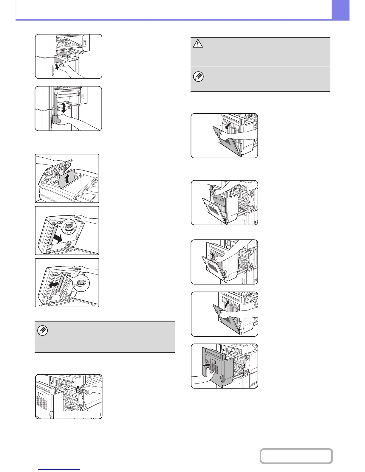 The fusing unit and paper exit area are hot. Take care