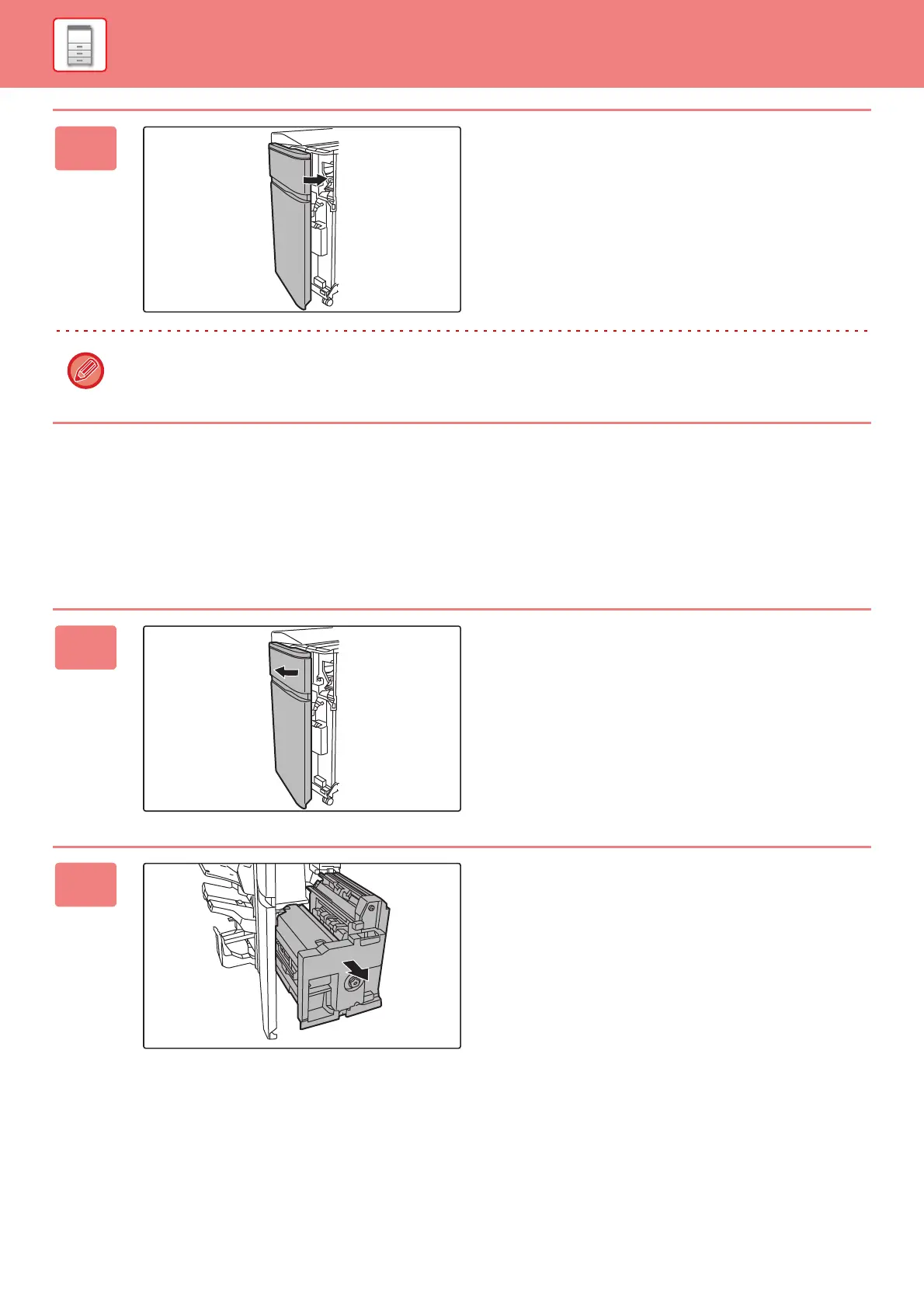 Before starting this procedure, remove all output from the output tray of the saddle stitch finisher (100-sheet stapling).