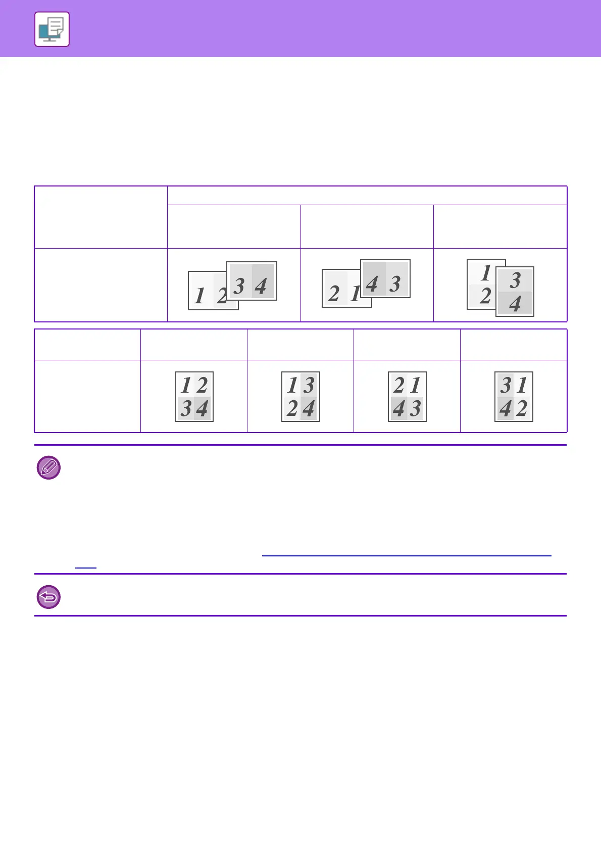 • In a Windows environment, the page order can be viewed in the print image in the printer driver properties window.