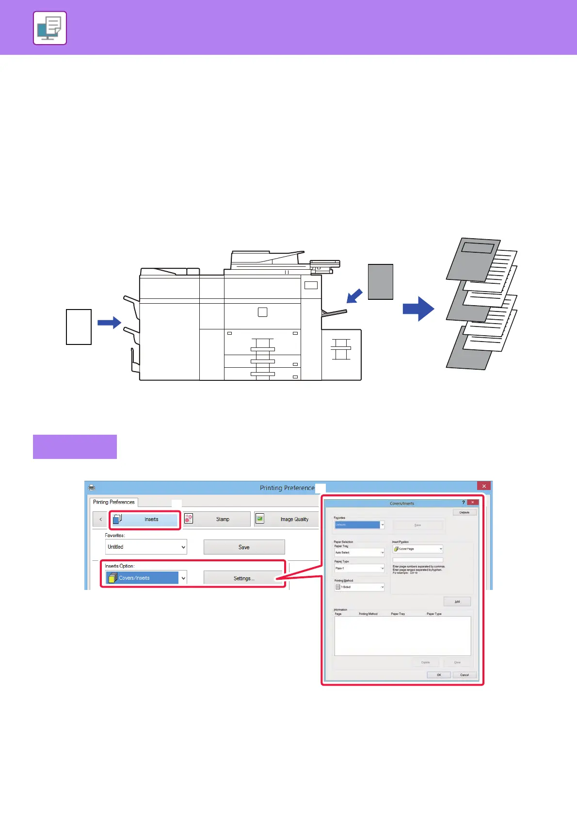 (2) Select [Covers/Inserts] from [Inserts Option], and click the [Settings] button.