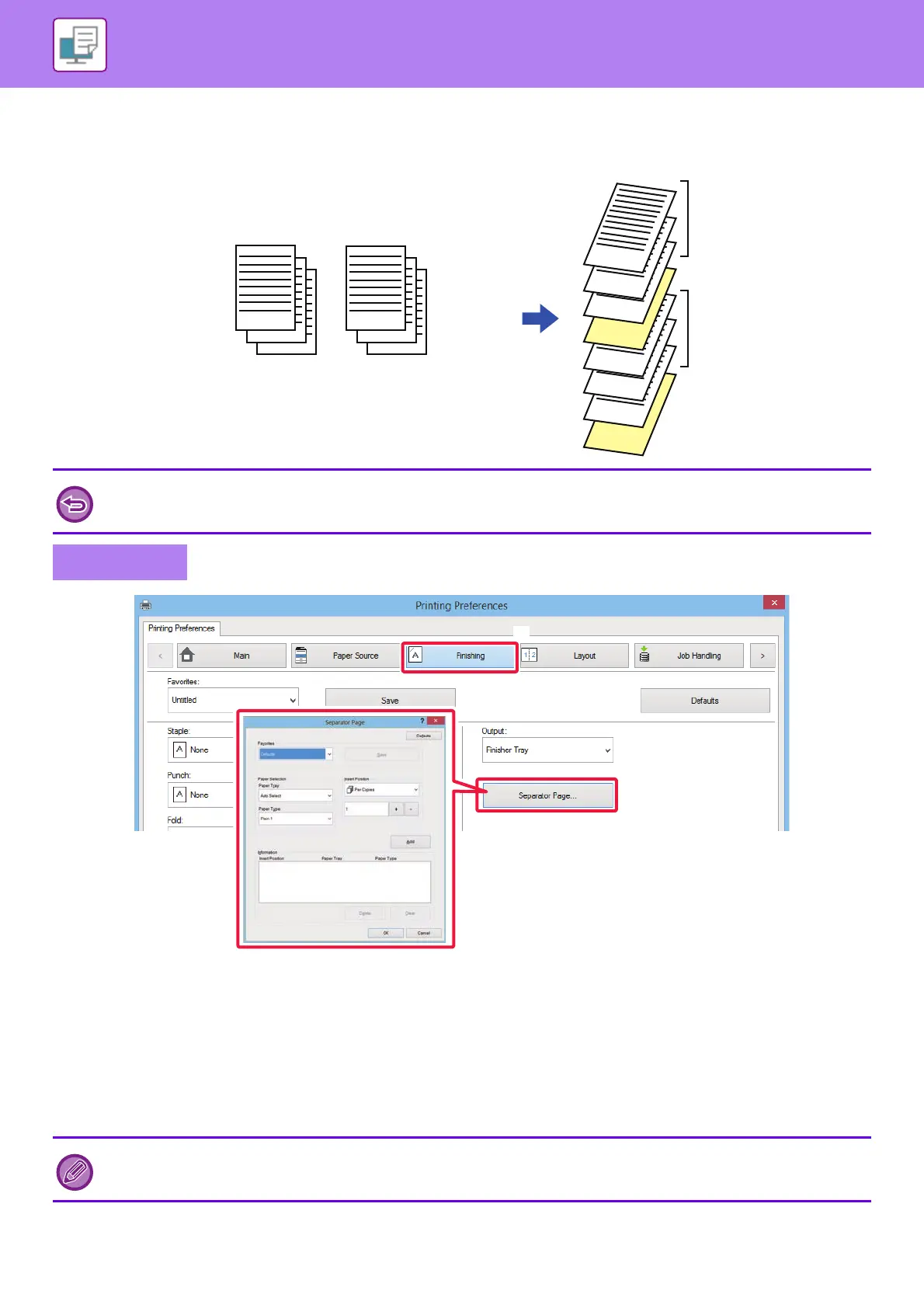 You can insert separator pages between jobs or the specified number of copies.