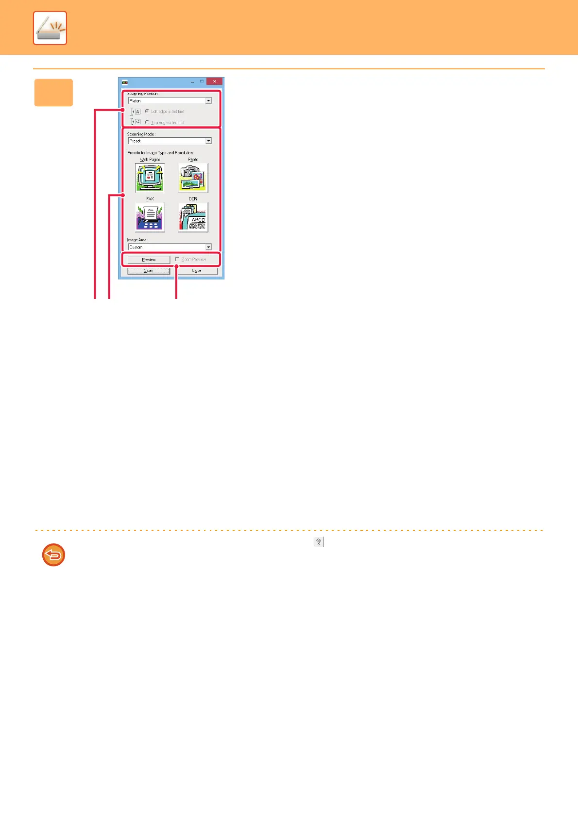• For further information on the scan settings, click the button in the preview image screen of step 7 to
