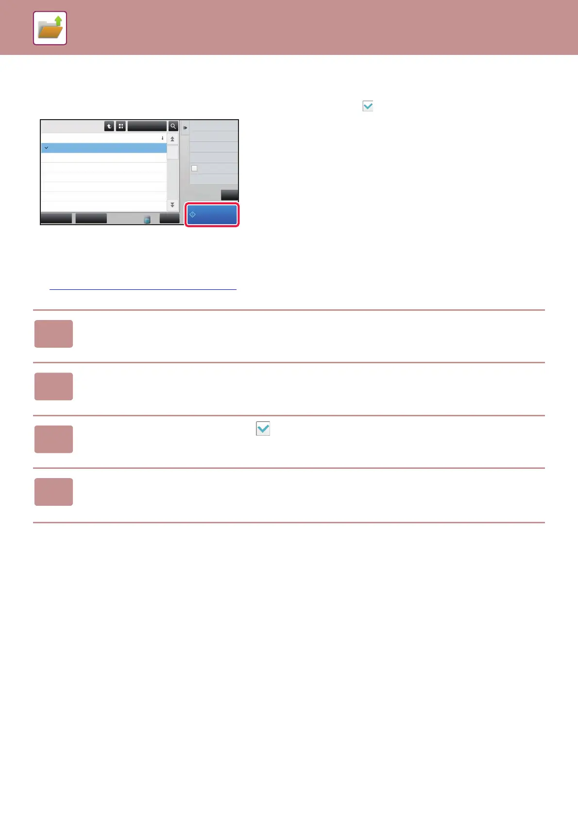 Prints a file with the various settings used when it was saved. Select a file and tap the [Print Now] key.