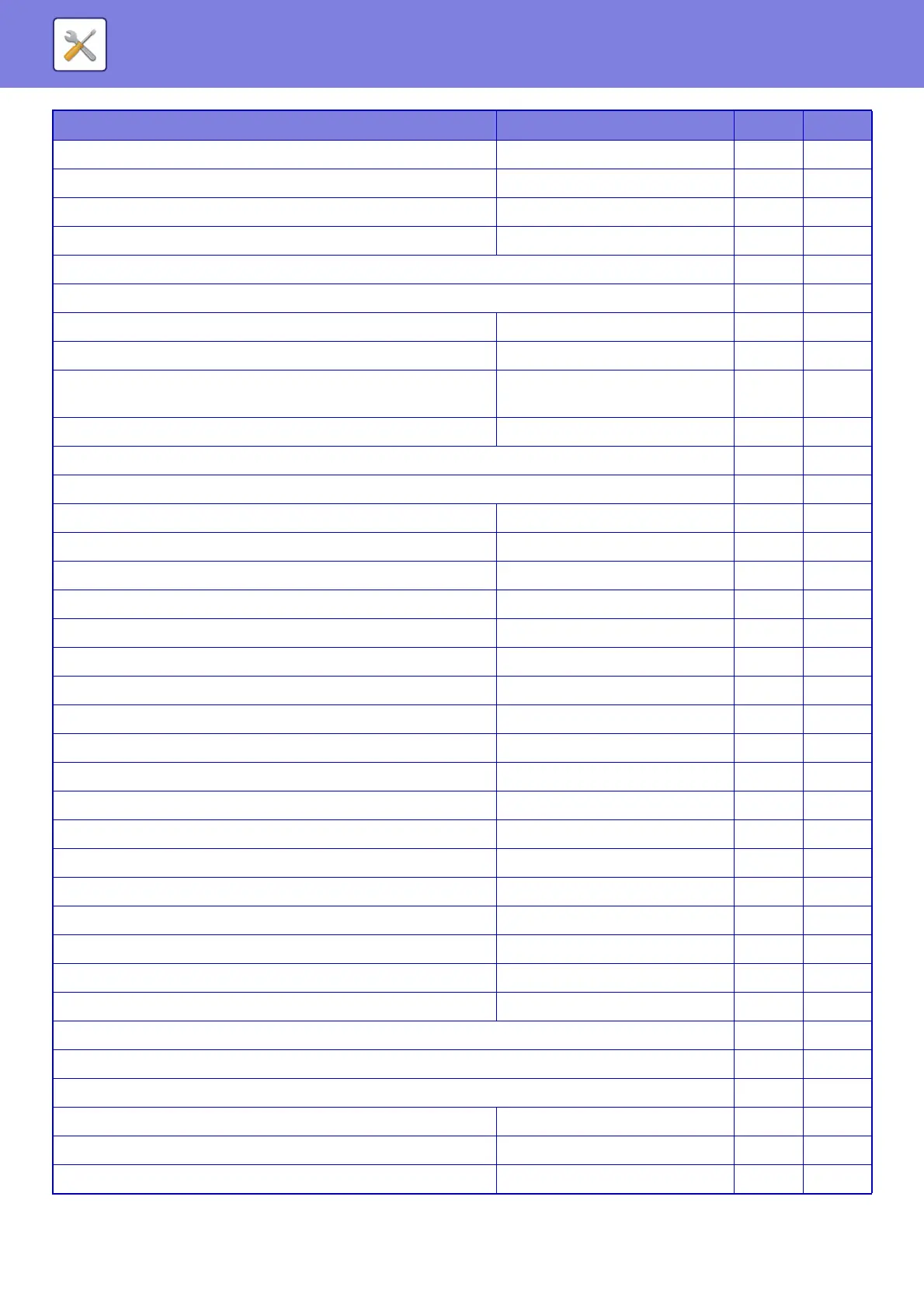 SYSTEM SETTINGS►SETTING MODE LIST