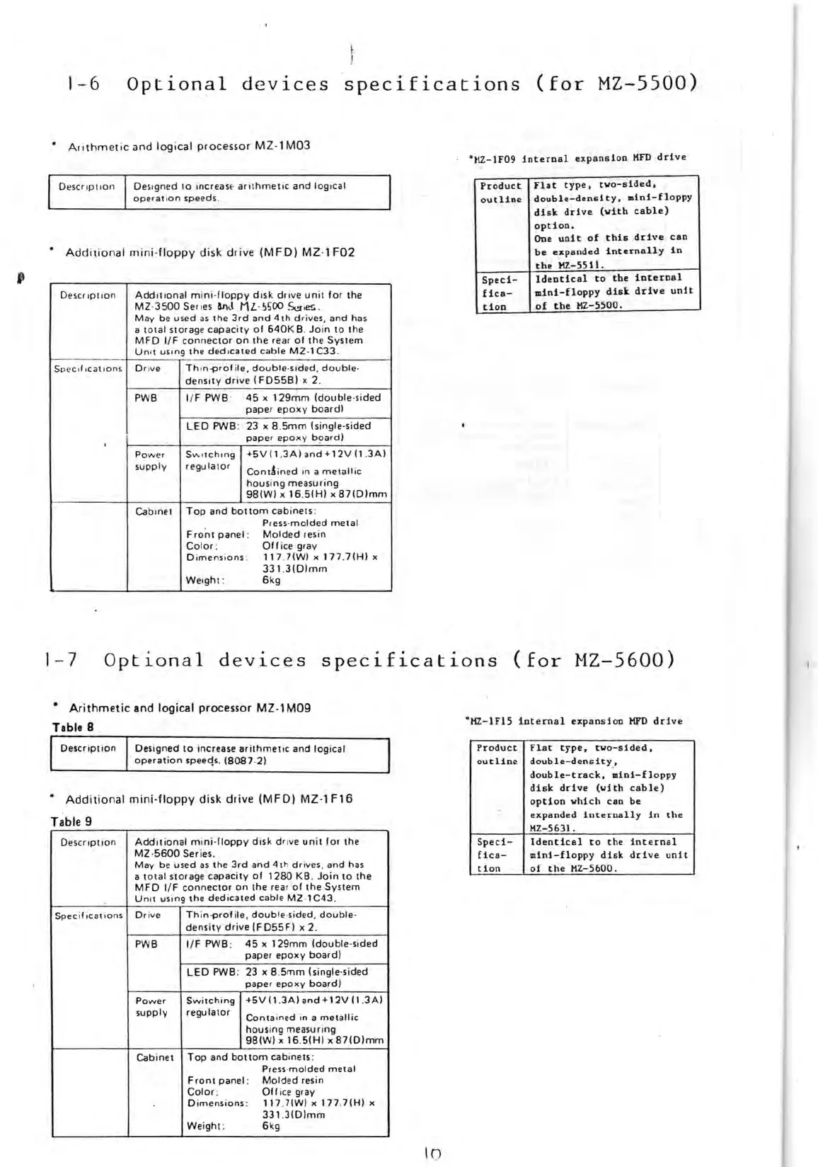 Sharp MZ-5600 - Optional Devices Specificatio~S