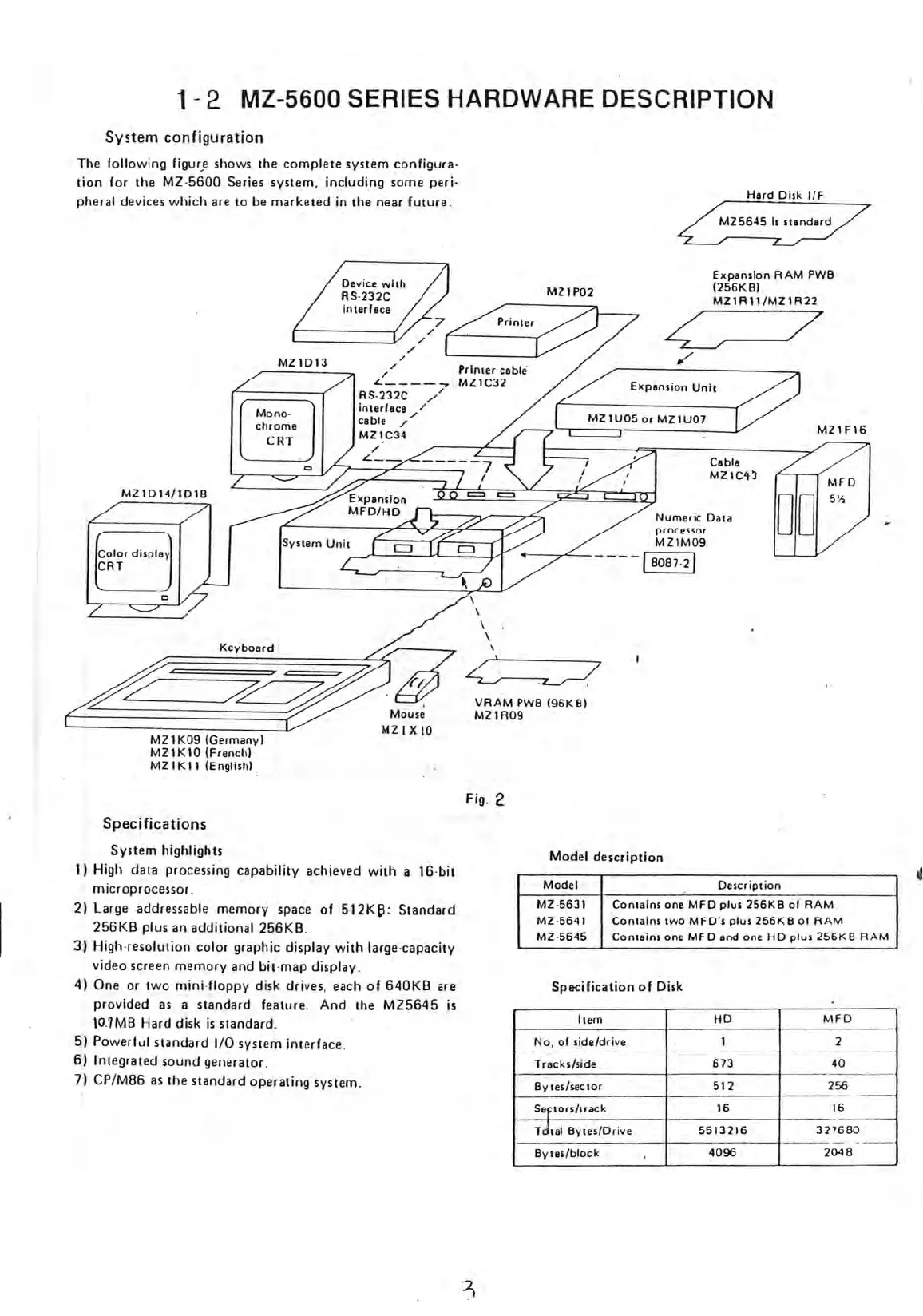 MZ-5600 Series system, including some peri-