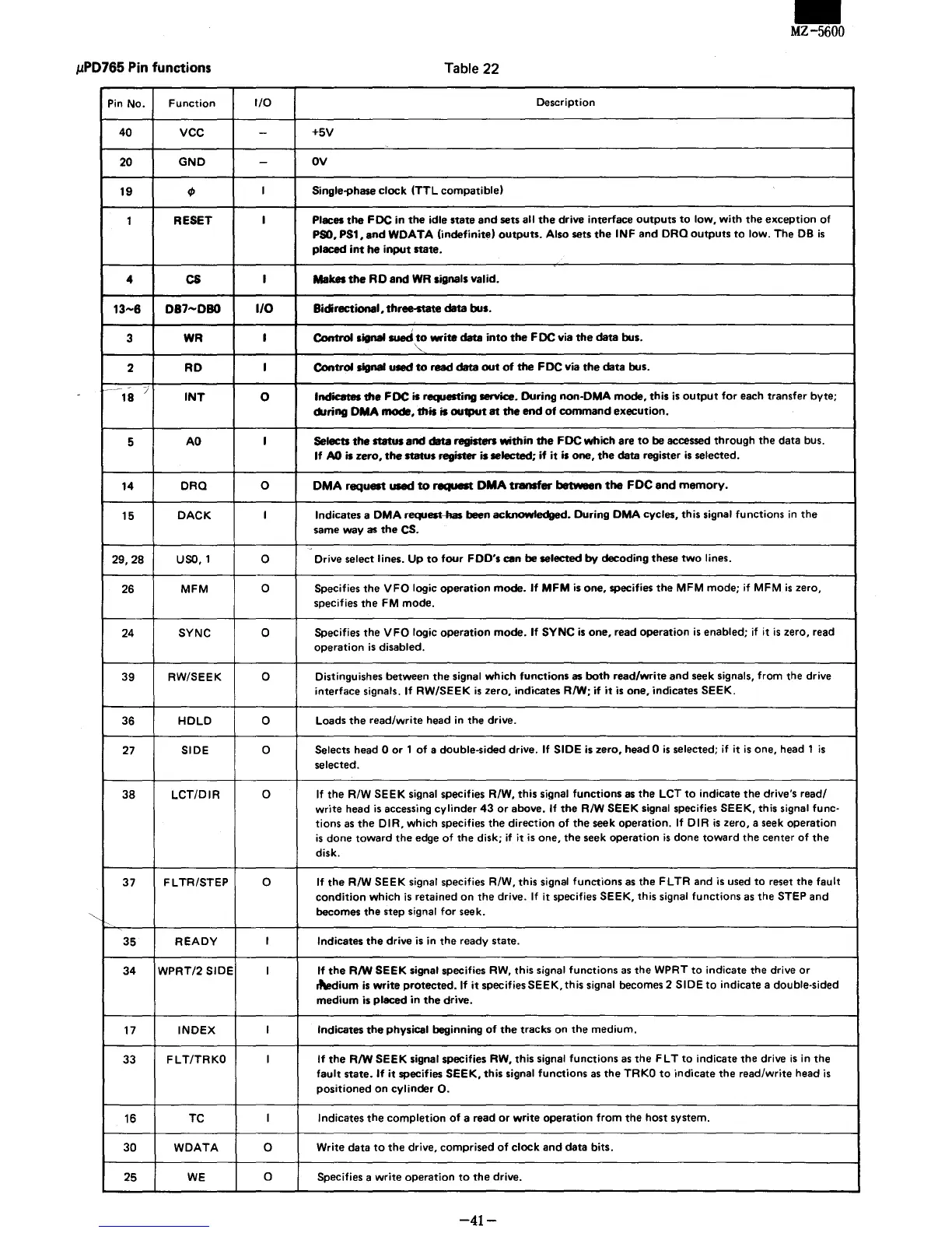 IlPD765 Pin functions