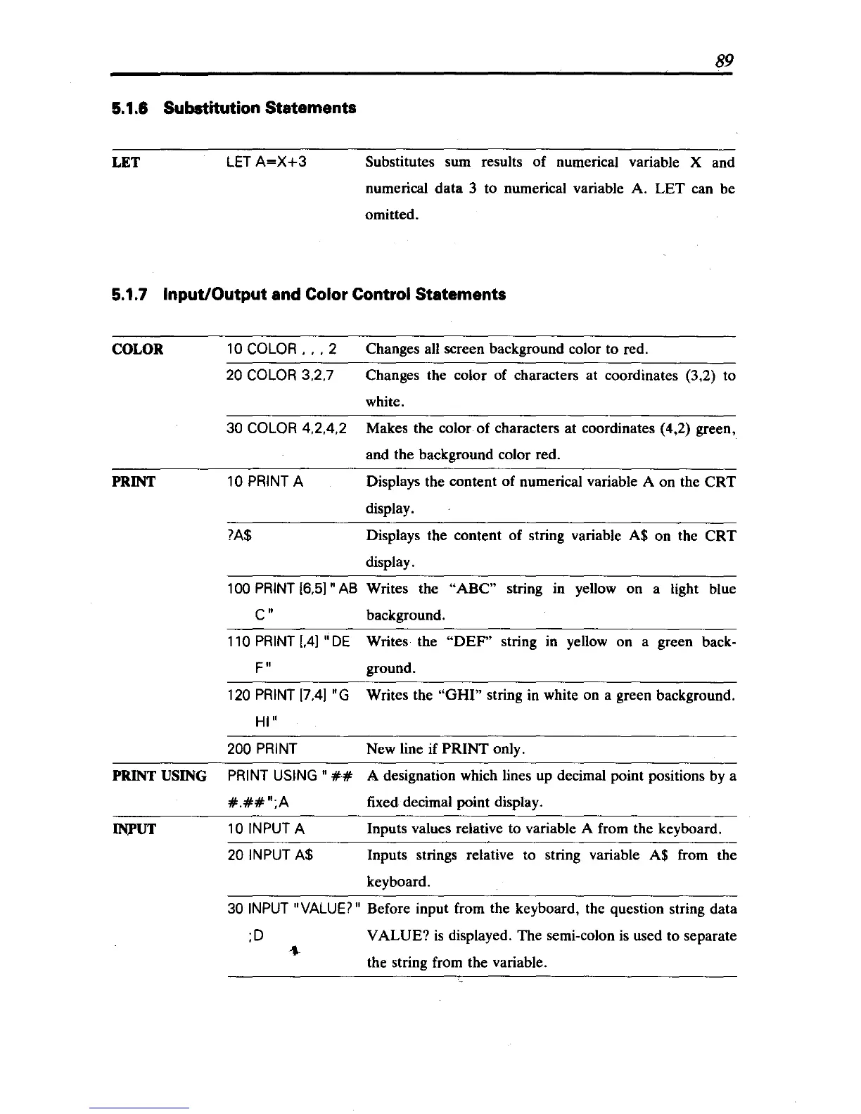 30 INPUT "VALUE?" Before input from the keyboard, the question string data