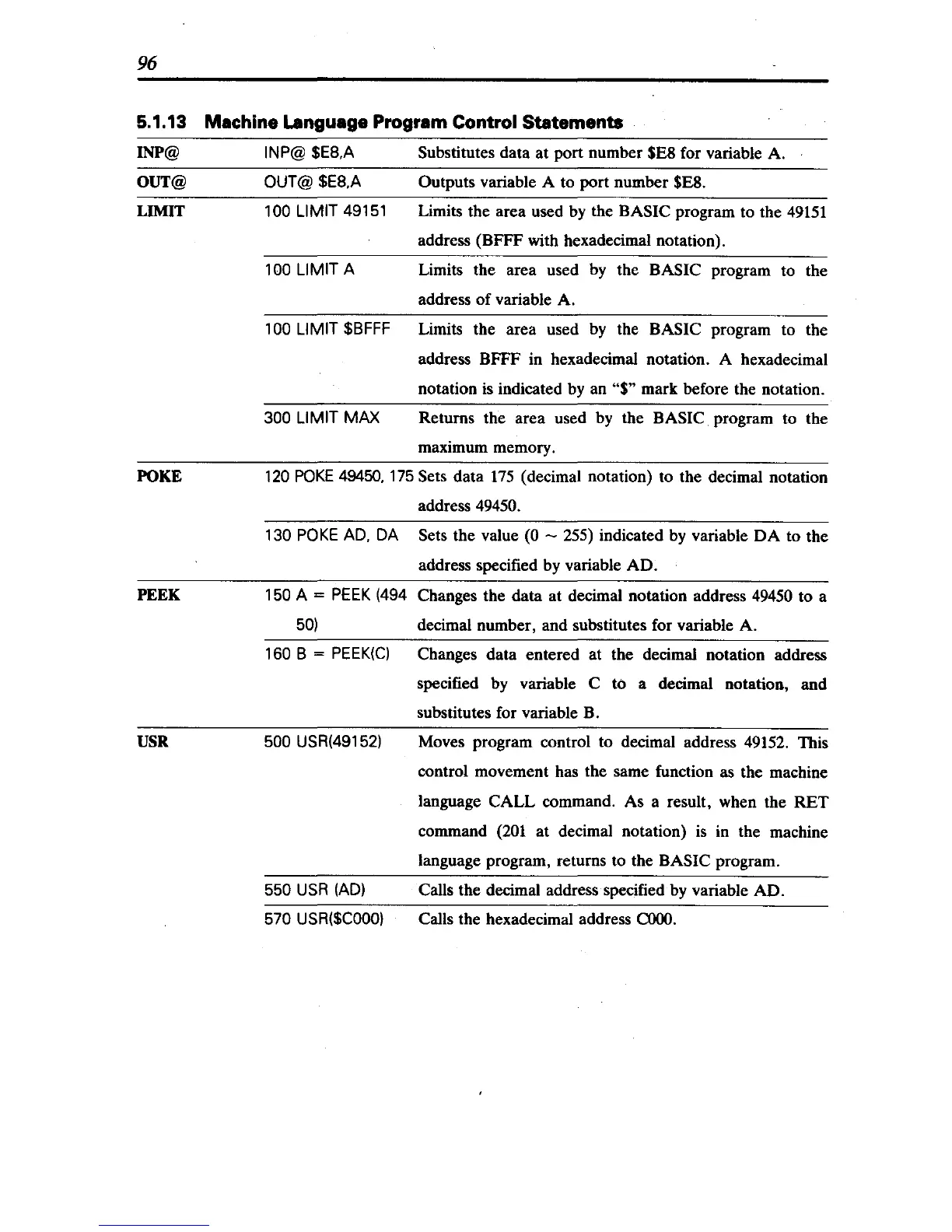 100 LIMIT $BFFF Limits the area used by the BASIC program to the