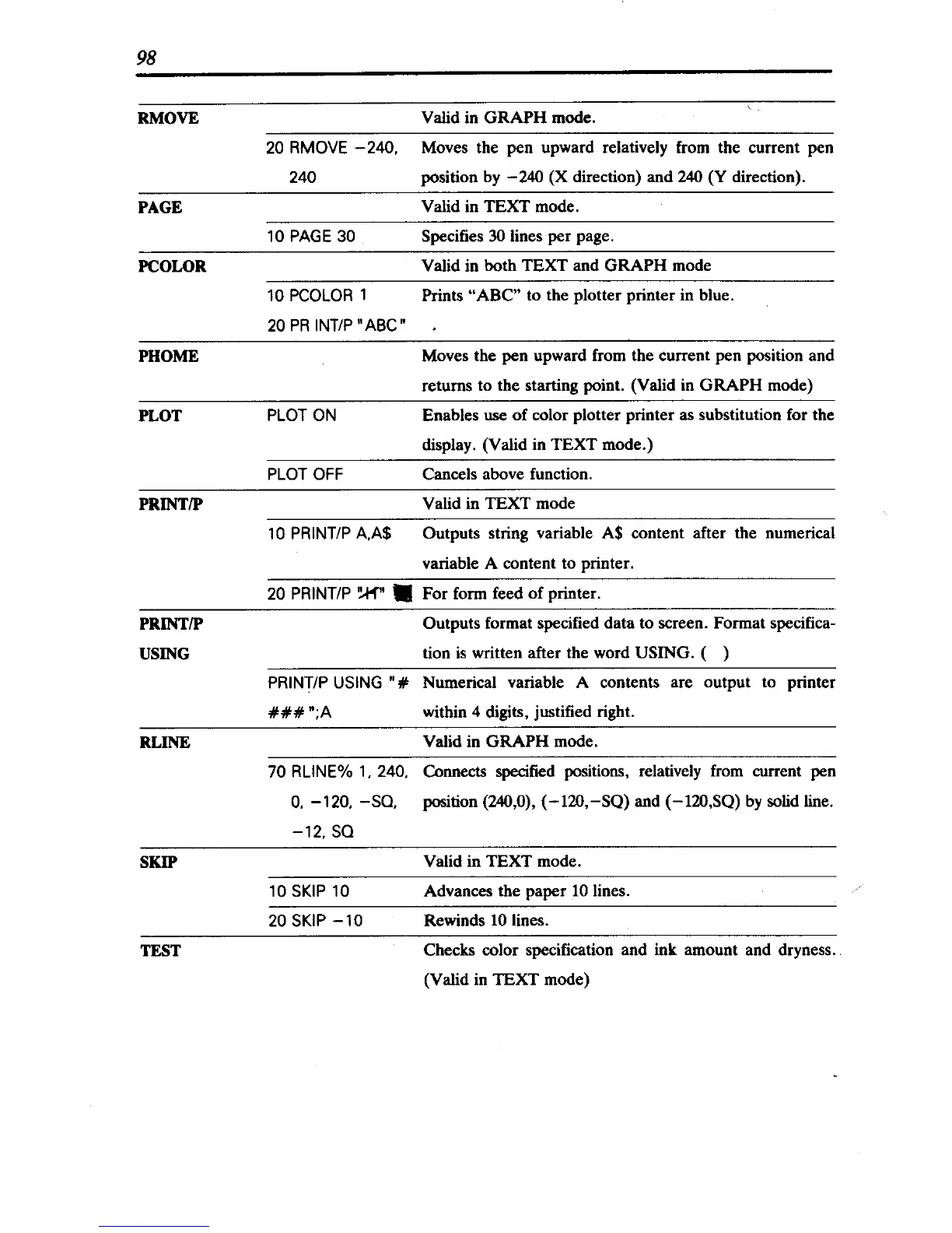 Valid in TEXT mode