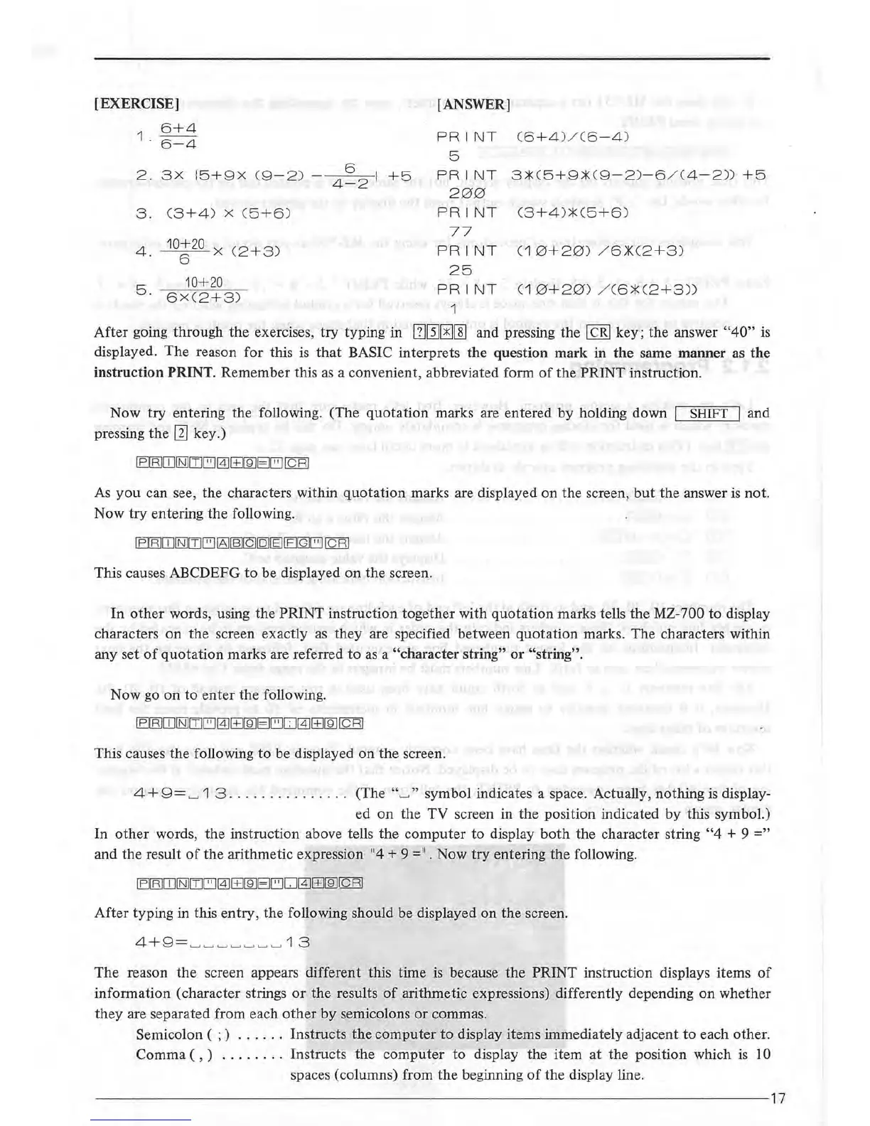 words, using the PRINT instruction together with