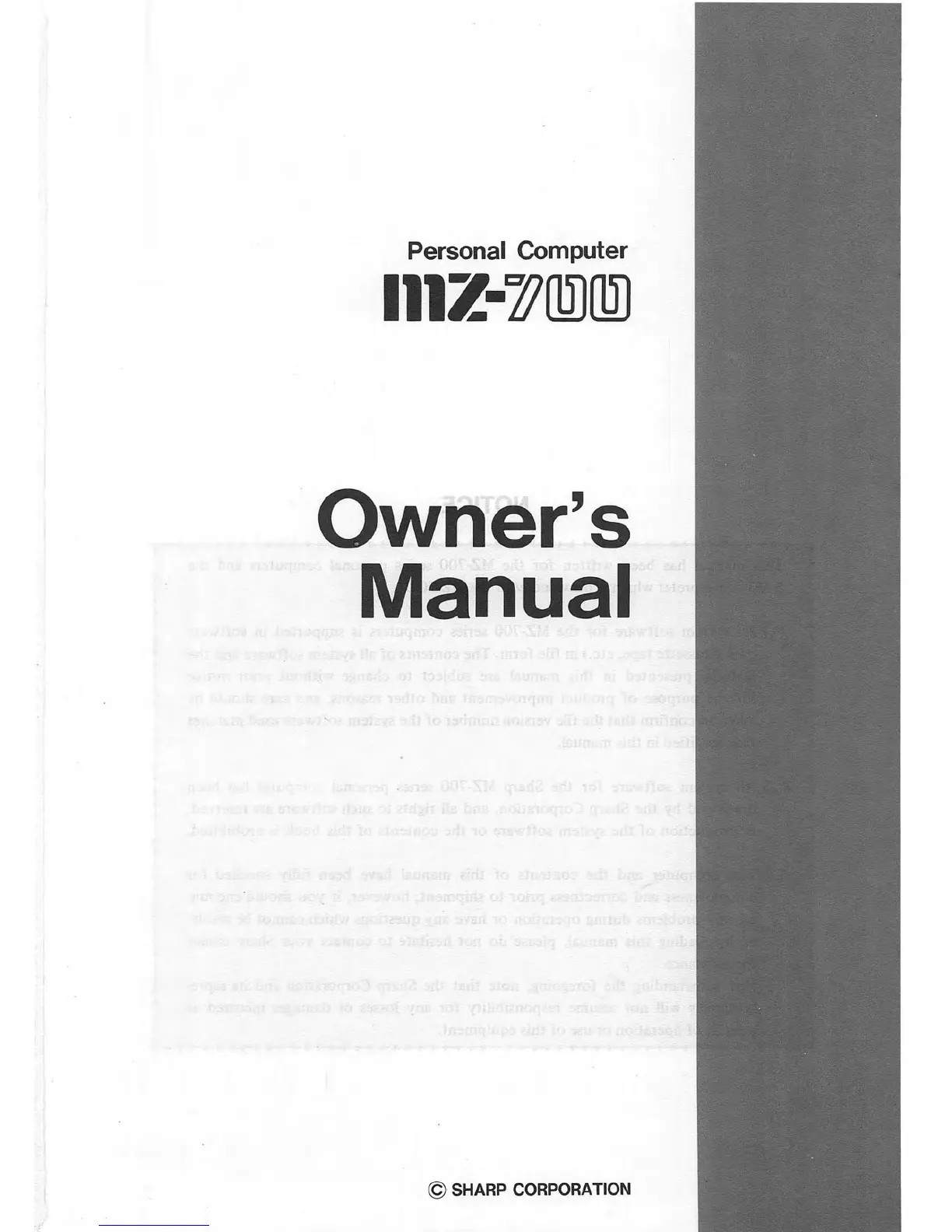 Other manuals for Sharp MZ-700