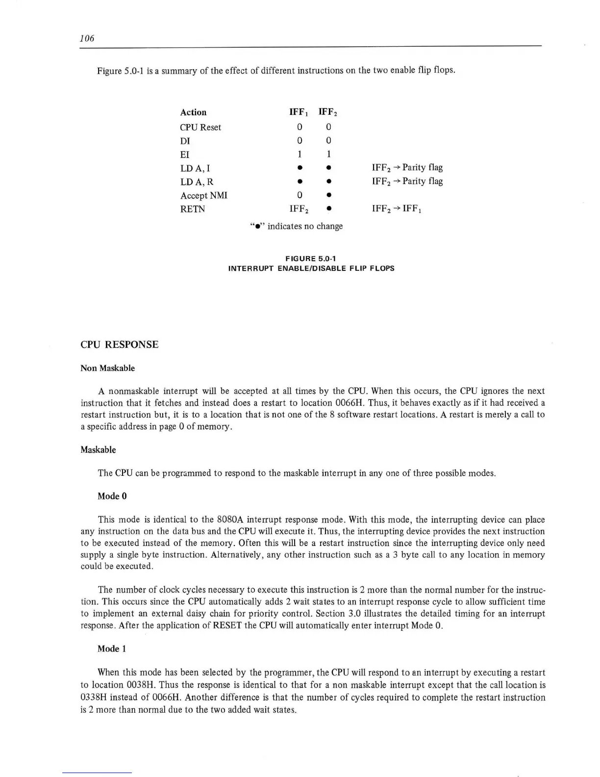 identical to the 8080A interrupt response mode. With this mode, the interrupting device can place