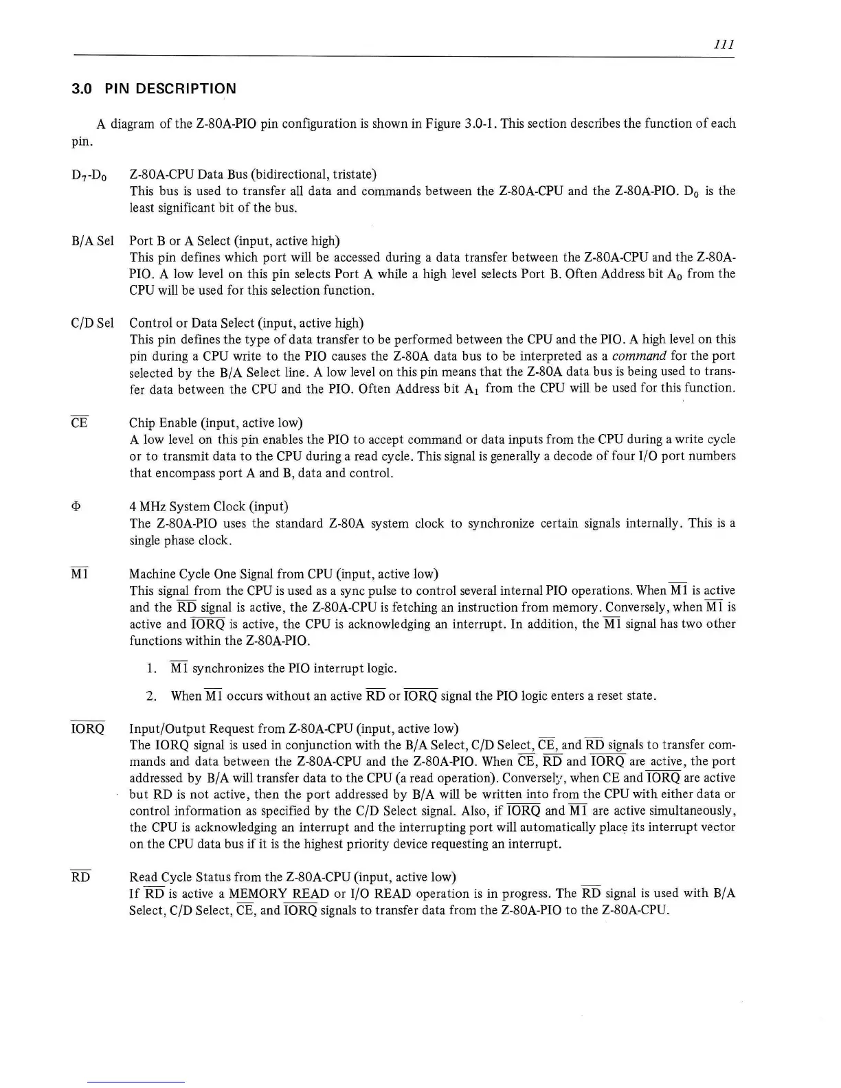 mands and data between the Z-80A-CPU and the Z-80A-PIO. When CE, RD and IORQ