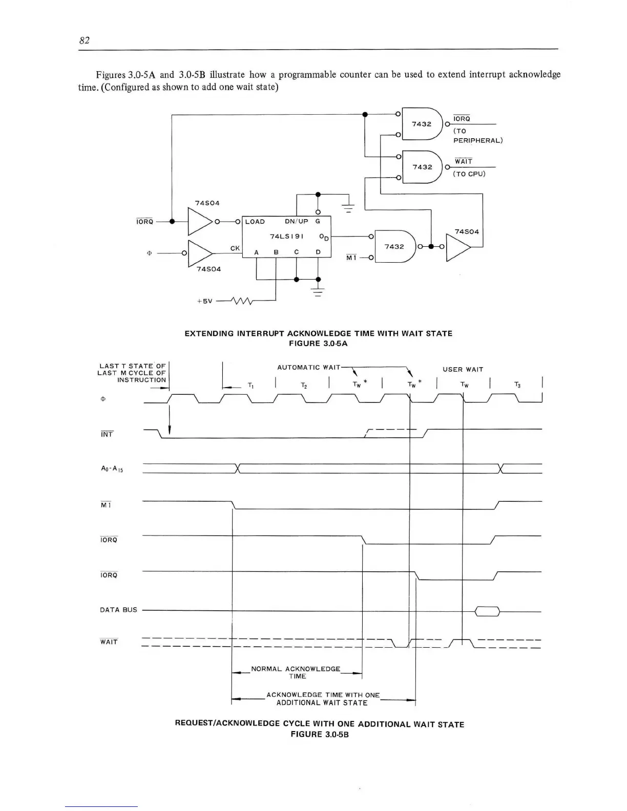 Figures 3.0-SA and 3.0-SB illustrate how a programmable counter can be used to extend interrupt acknowledge