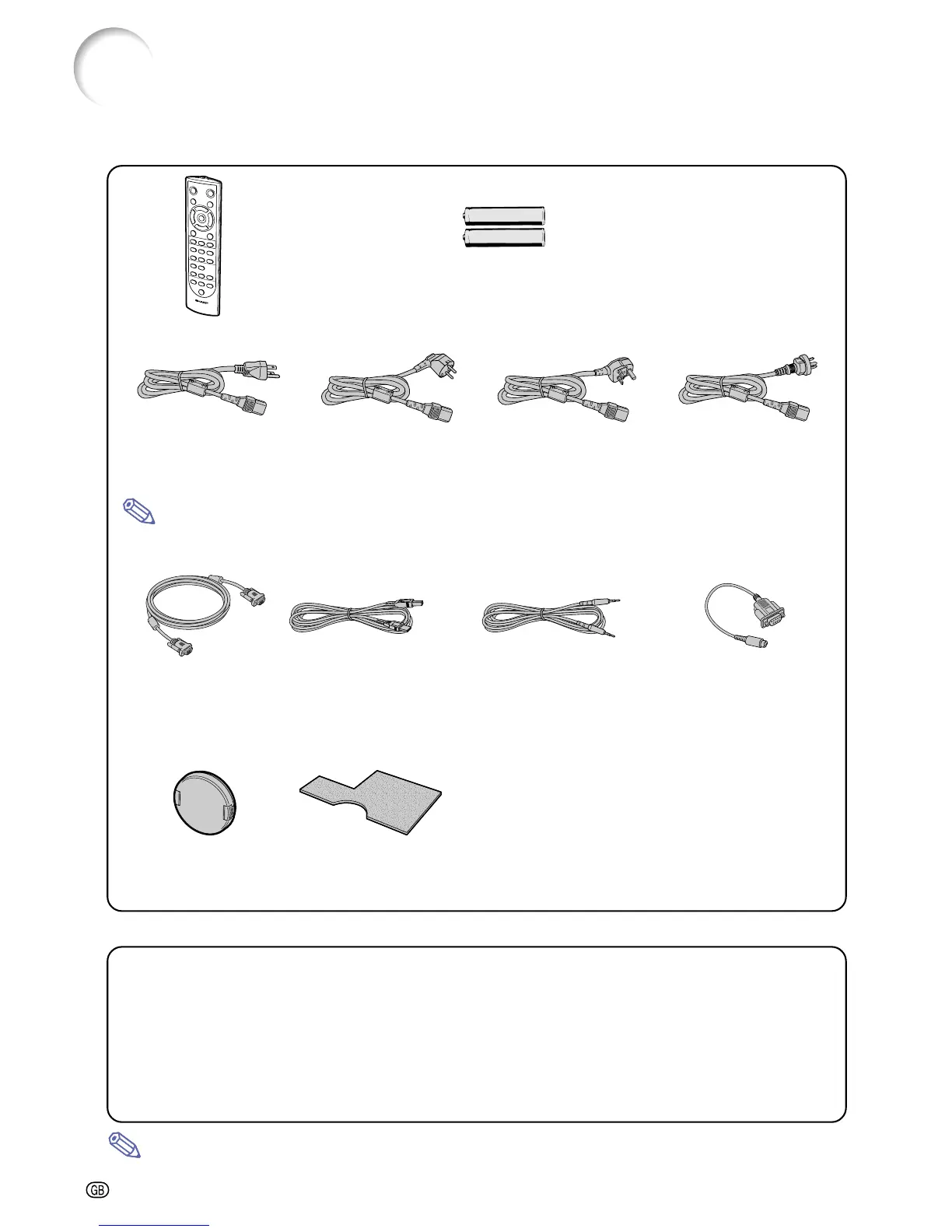 • Depending on the region, projectors are shipped only one power cord (see above). Use the power cord