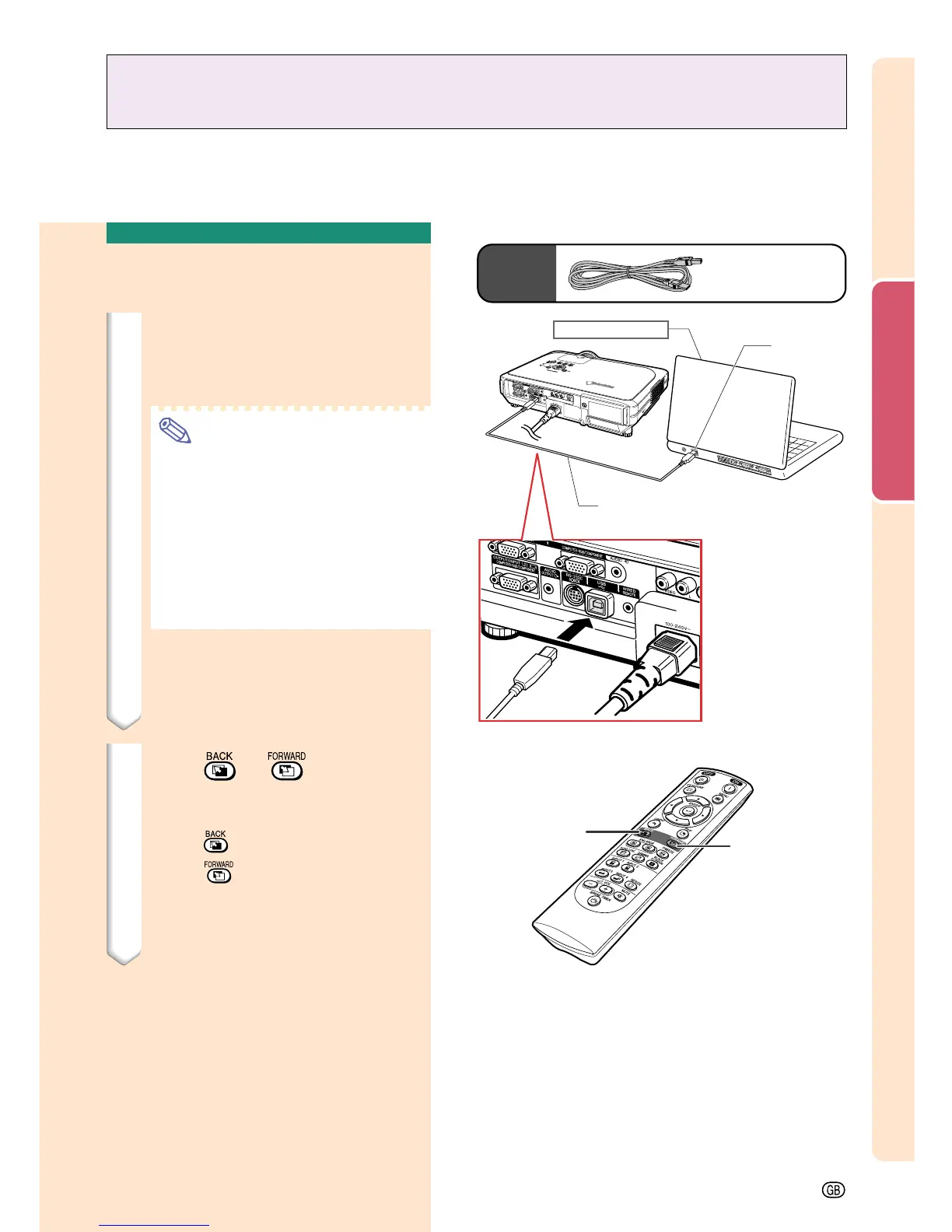 The Wireless Presentation function on the projector works the same as the [Page Up] and