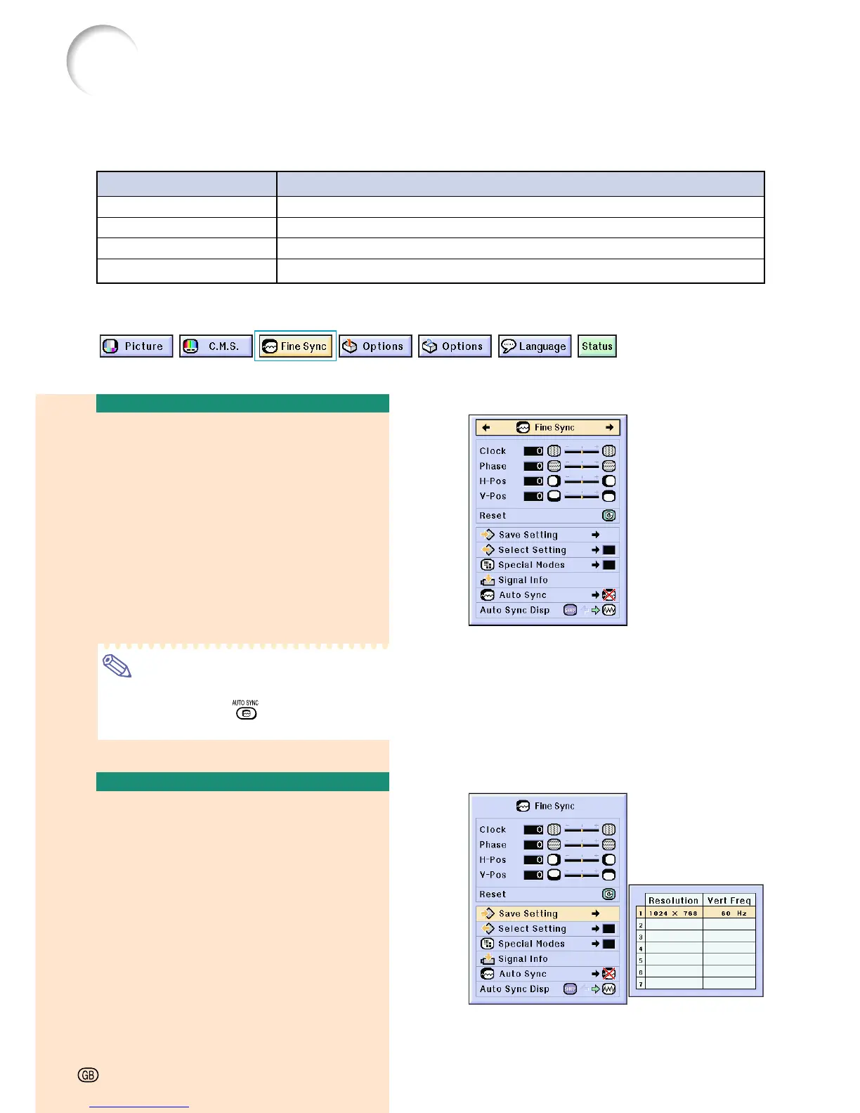 Pos” in the “Fine Sync” menu on the