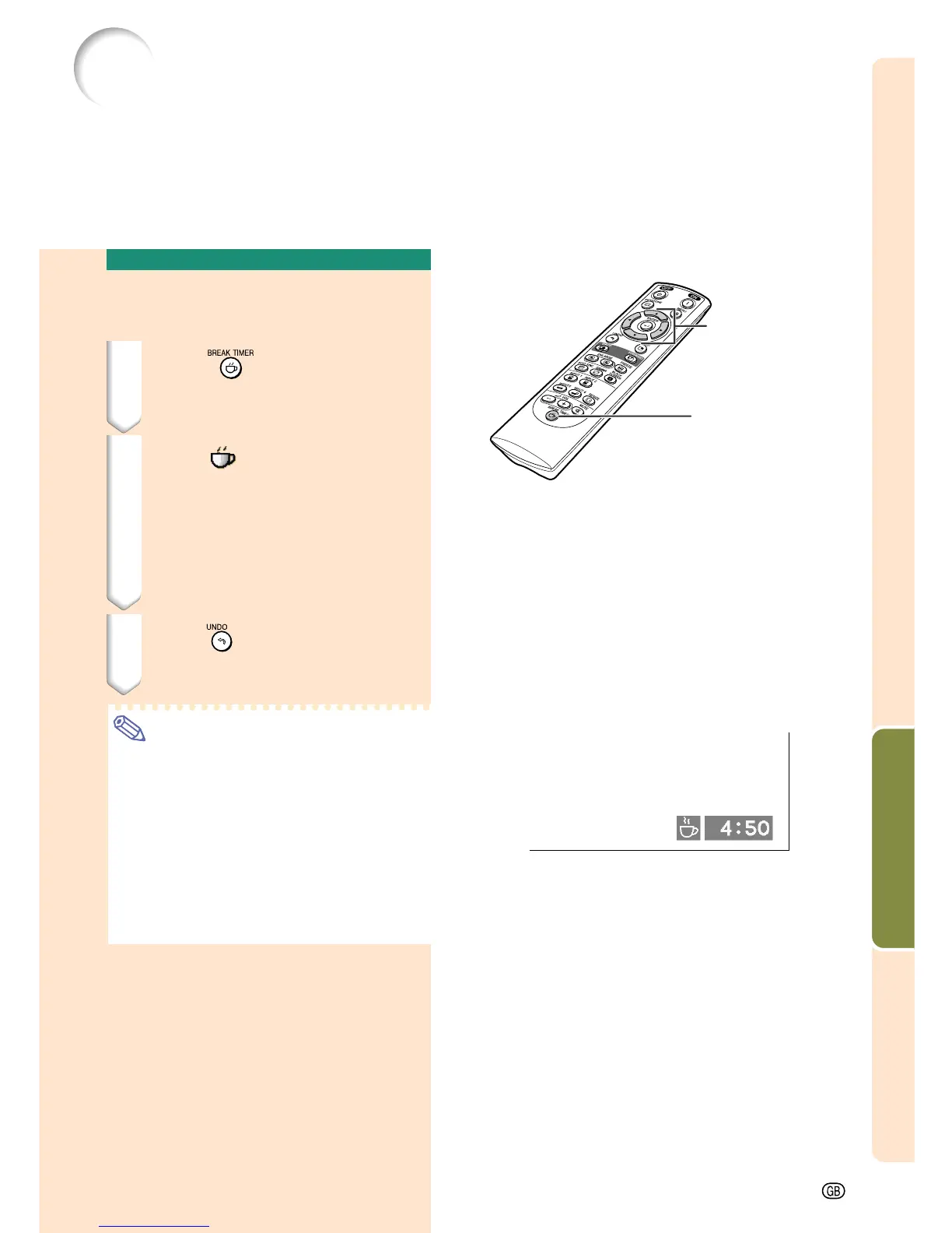 1 Press . The break timer