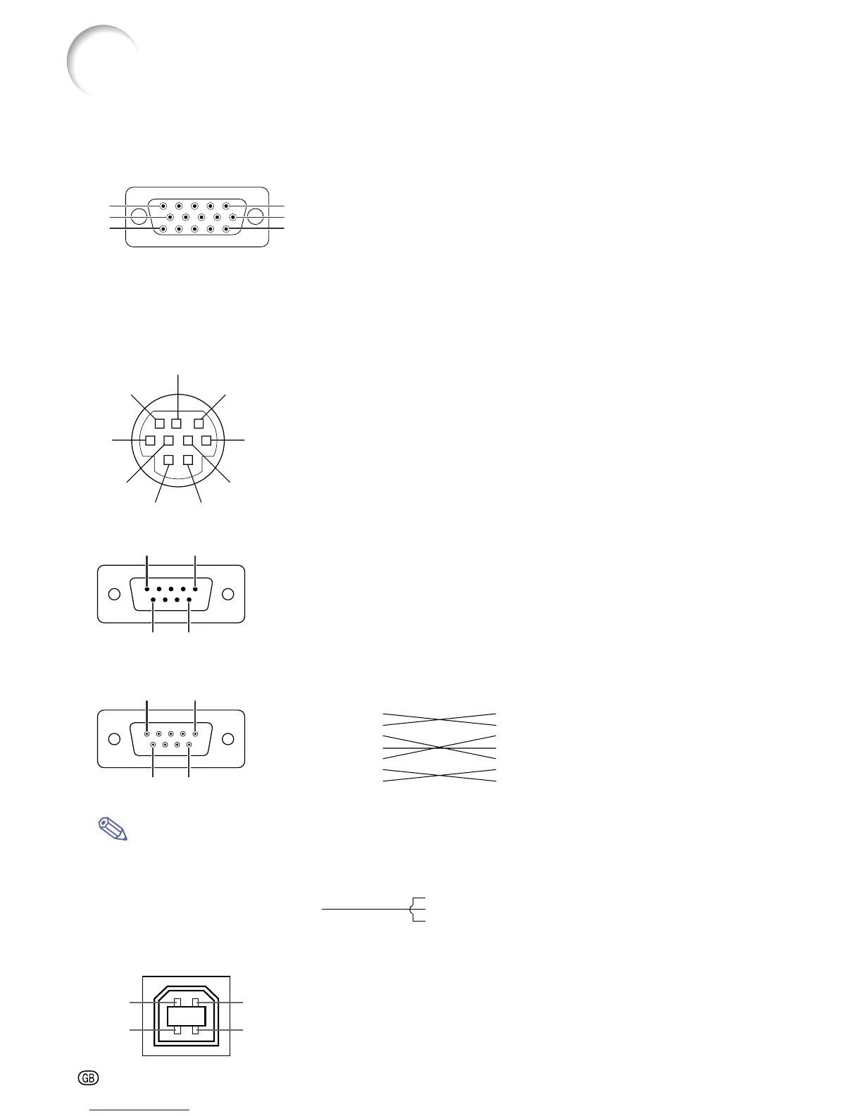 RS-232C Cable recommended connection: 9-pin D-sub female connector