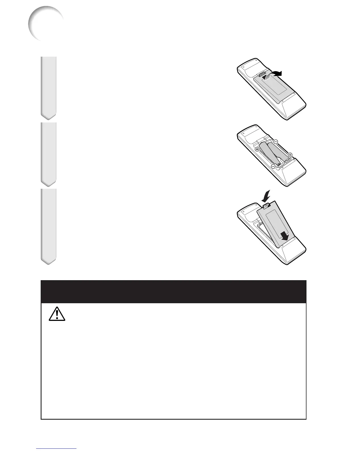 • Remove the batteries from the remote control if you will not be using the remote control for a long time.